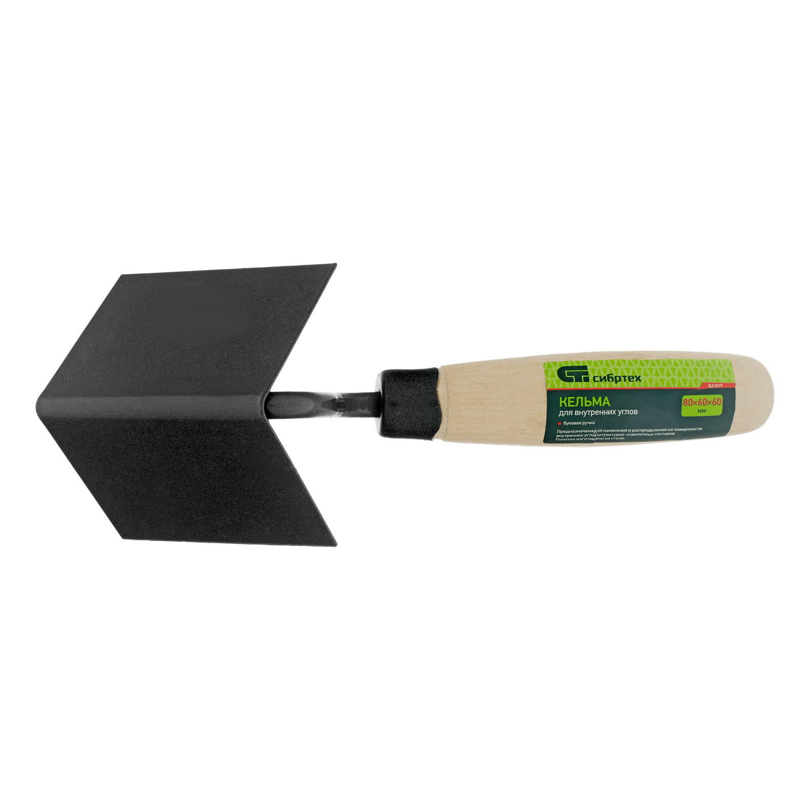 Стальная угловая кельма Сибртех 86307 размером 80 х 60 х 60 см, с буковой ручкой, используется для формирования внутренних углов. Позволяет аккуратно наносить и равномерно распределять раствор, благодаря чему угол получается ровным и гладким. Пригодится для проведения строительно-отделочных работ.