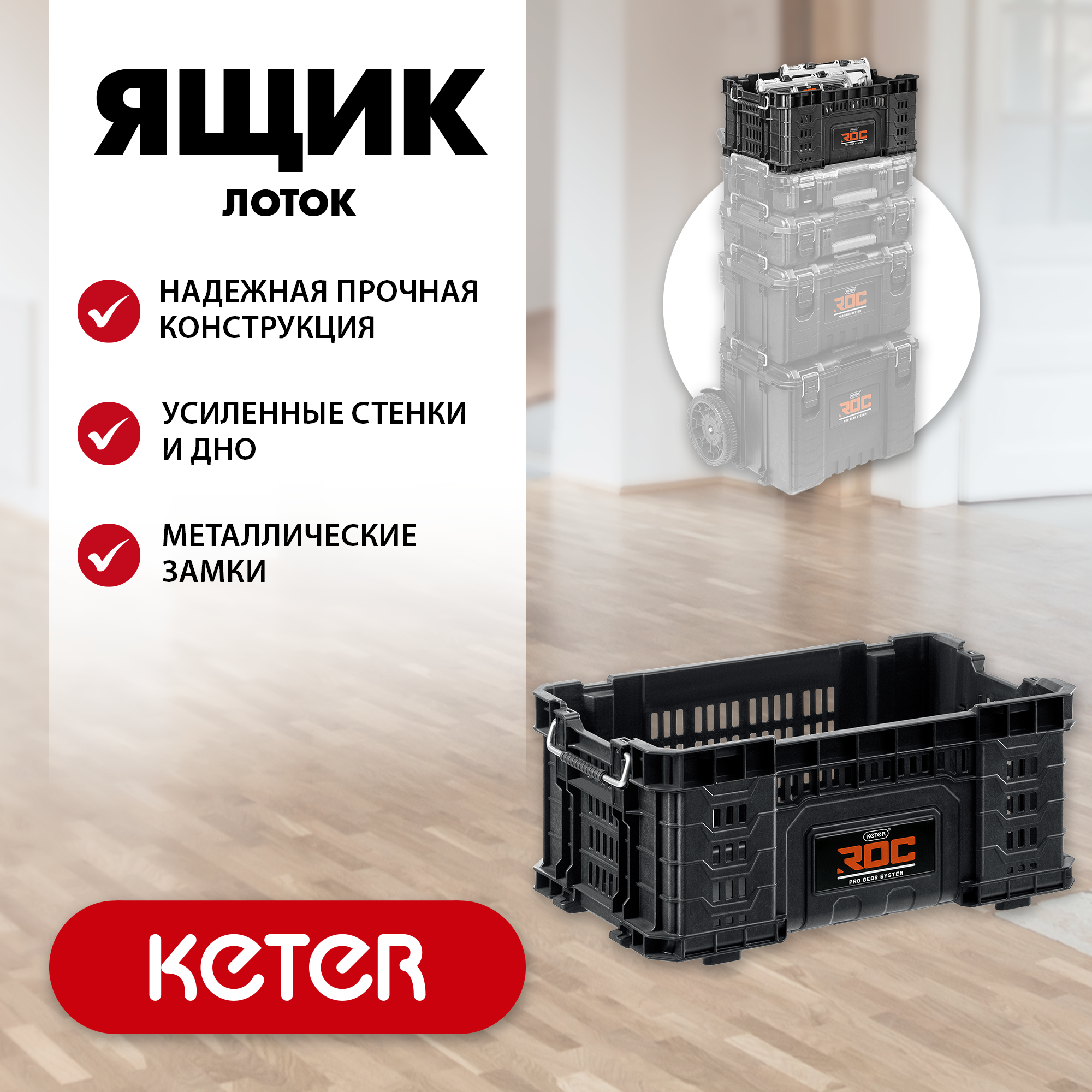 Вместительный органайзер 22” является частью системы KETER PRO GEAR, позволяющей соединять нужные вам ящики в любой комбинации, для хранения или удобства переноски.