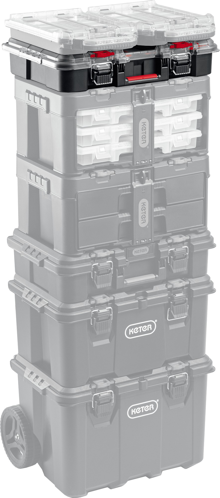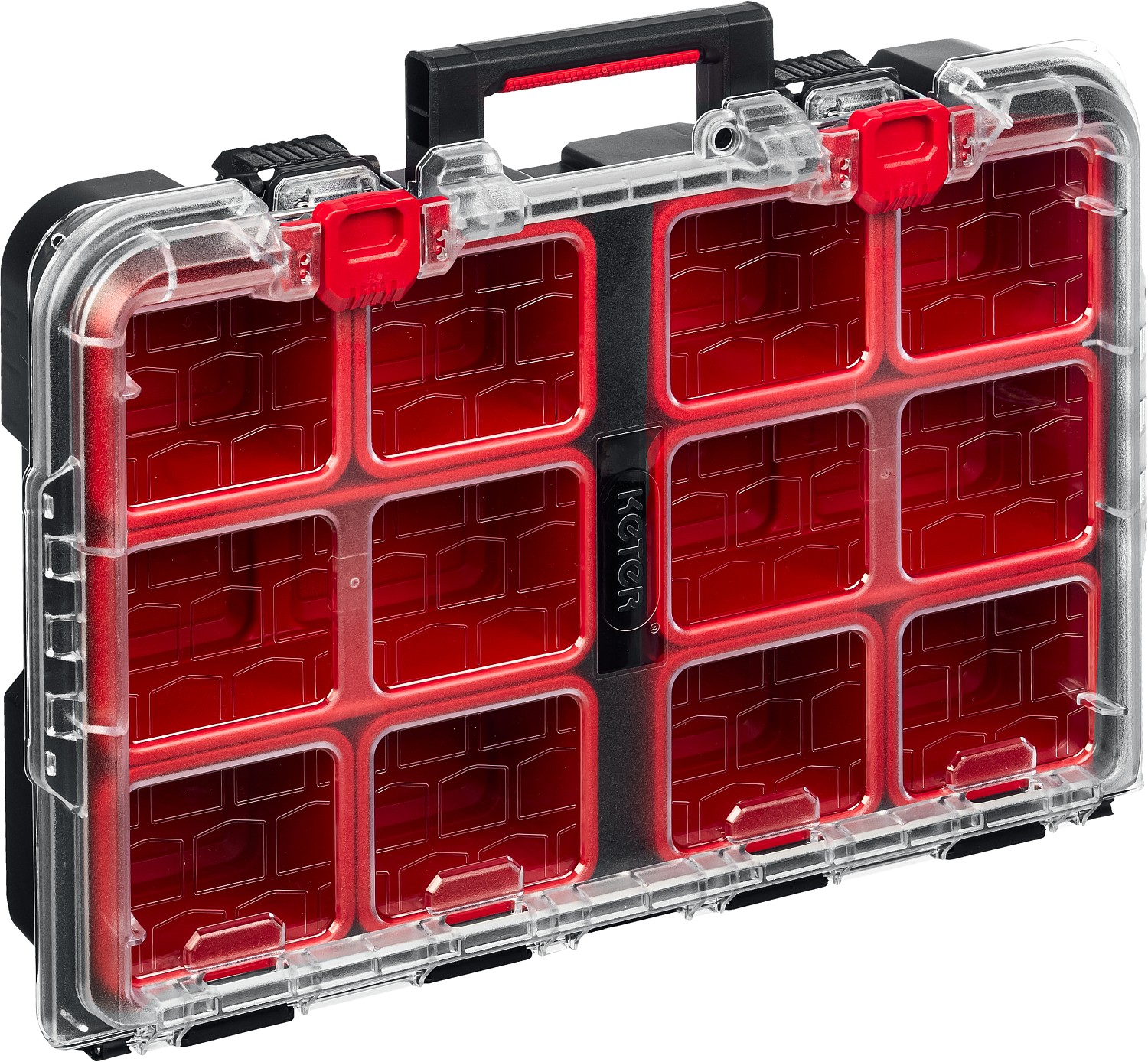Небольшой органайзер с прозрачной крышкой и съёмными лотками.