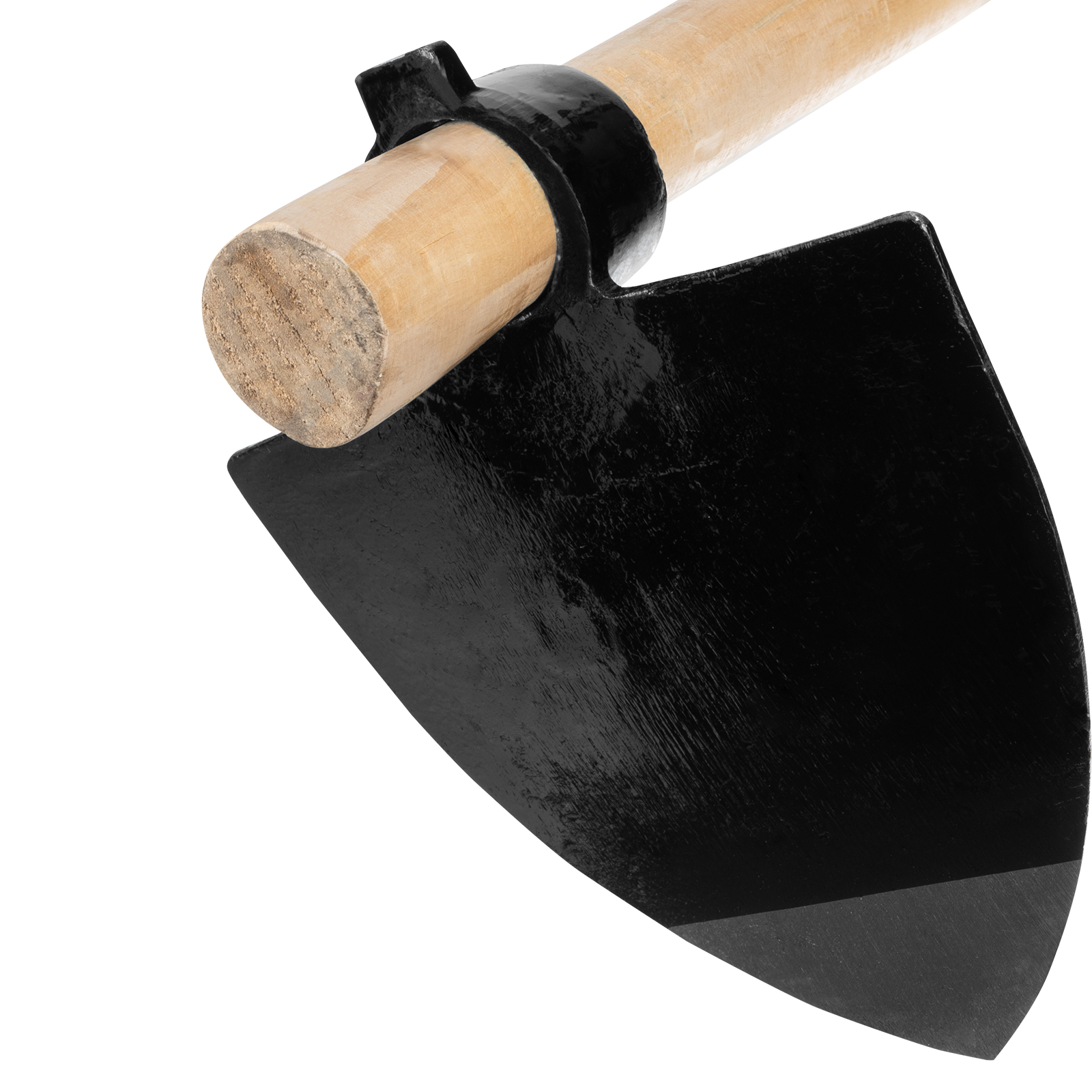- Надежная и безопасная конструкция — рабочая часть, насаженная на черенок «в распор», сводит к минимуму риск травмирования при размахе.