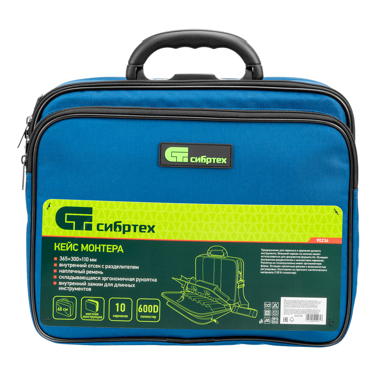 Кейс монтера Сибртех 90236 размером 365 х 300 х 110 мм, с наплечным ремнем, имеет 10 карманов для размещения ручных инструментов и необходимых деталей. Жесткая конструкция обеспечивает сохранность содержимого во время транспортировки и хранения. Такая сумка для инструментов будет полезна мастерам по ремонту техники, монтажникам, слесарям и электрикам.