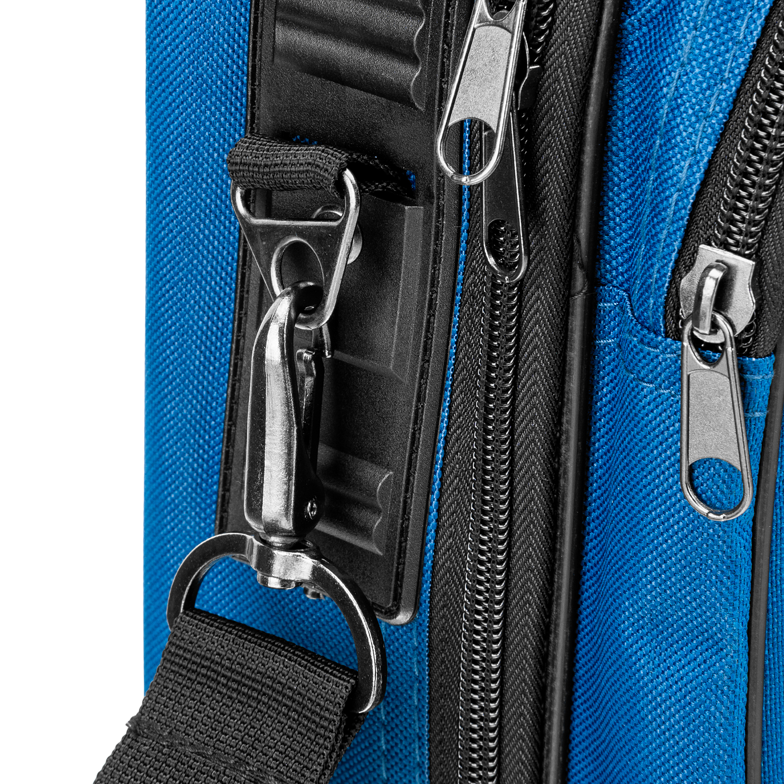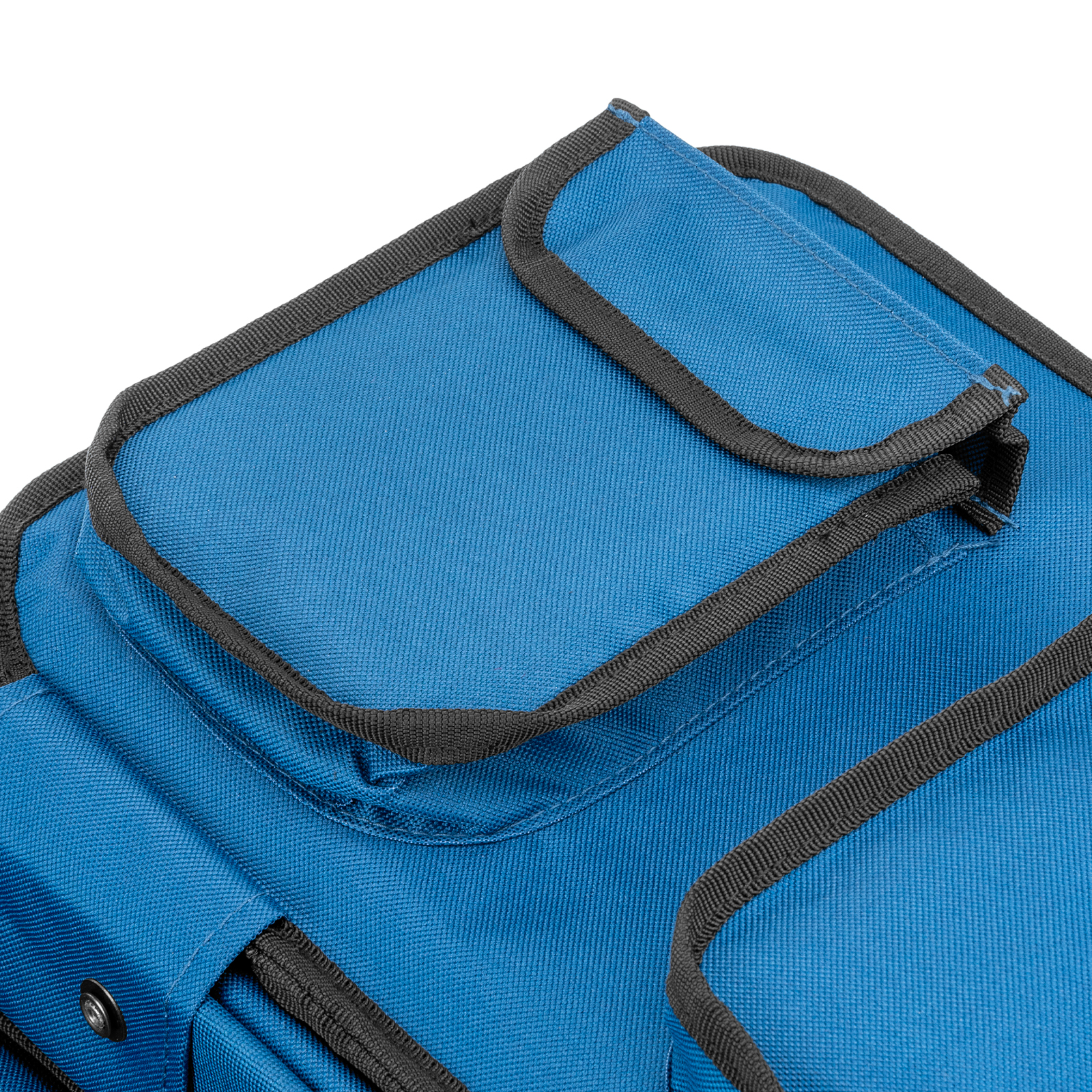 - Долговечность — при изготовлении использован прочный и износостойкий полиэстер 600D, устойчивый к истиранию, пластиковые торцевые накладки, стальные заклепки и усиленные карабины.