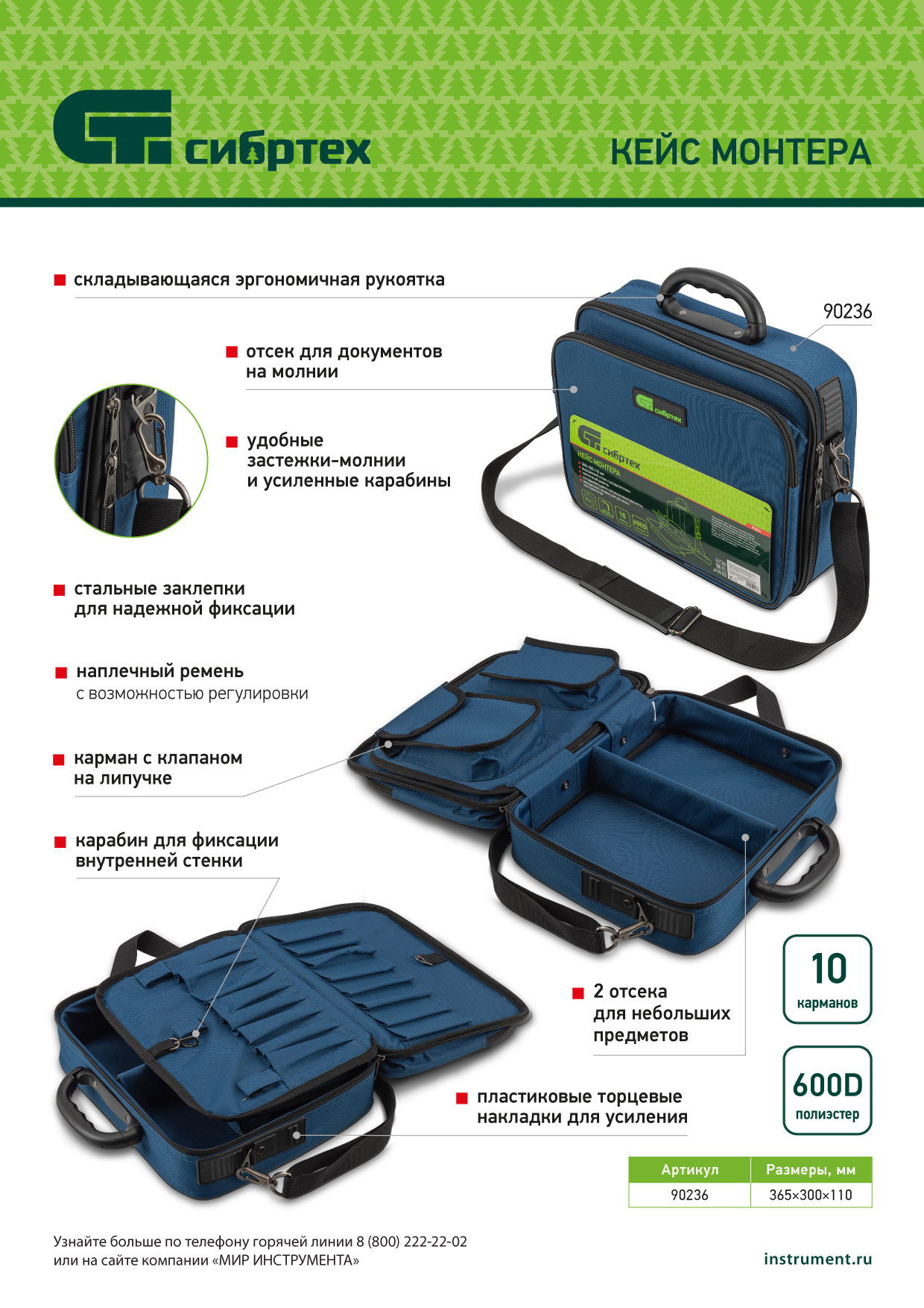 - Рациональная организация пространства — внутренний отсек имеет разделитель, также внутри предусмотрен зажим для длинных инструментов.