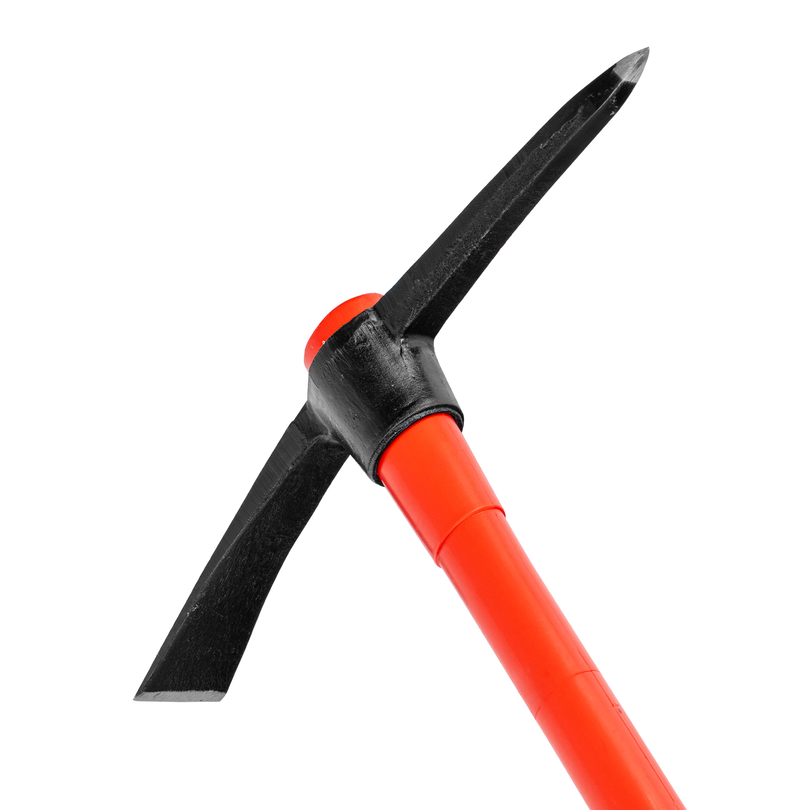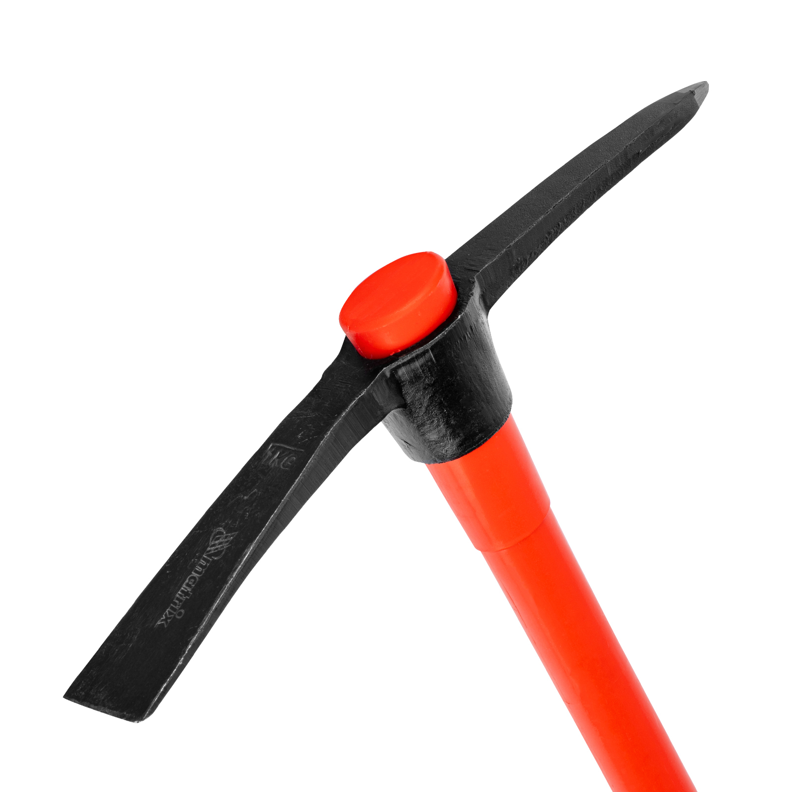 - Надежная конструкция — голова кирки крепится к рукоятке на «протяг», что исключает ее соскакивание в процессе работы.
