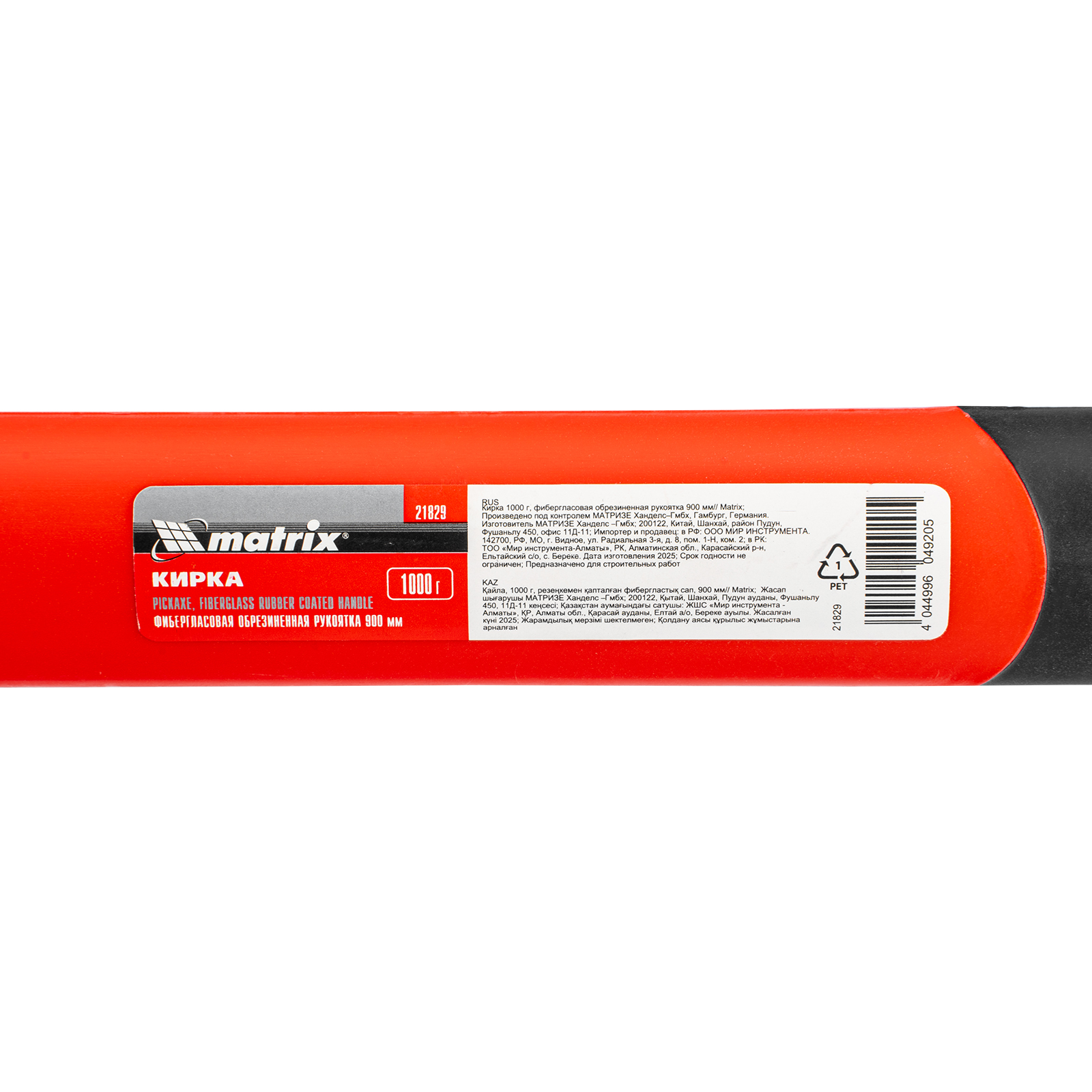 Кирка Matrix 21829 с головой весом 1000 г и фибергласовой обрезиненной рукояткой длиной 900 мм применяется для садовых, строительных и демонтажных работ. Длинная рукоятка эргономичной формы позволяет работать двумя руками, не выскальзывает и хорошо амортизирует удар, поэтому инструмент удобен в эксплуатации.