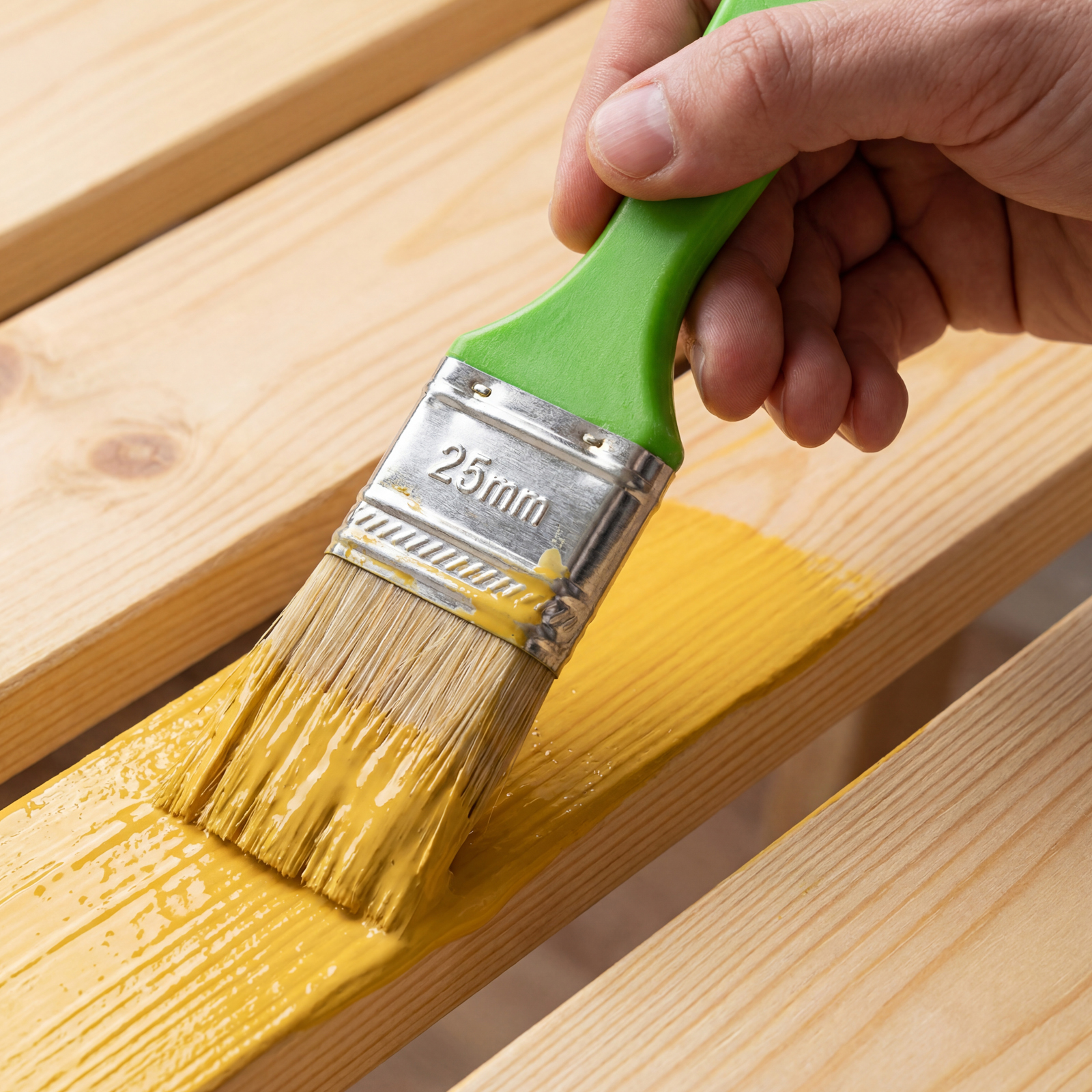 - Равномерное окрашивание — натуральная светлая щетина хорошо удерживает и распределяет краску.