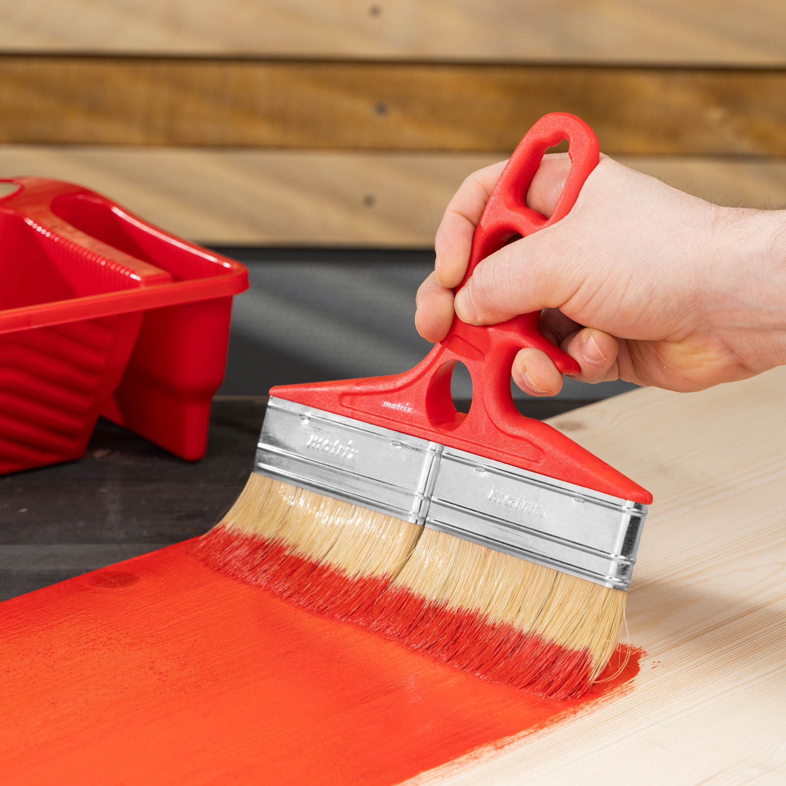 - Высокое качество лакировки — светлая щетина двойной выварки обладает способностью равномерно распределять краску по поверхности.