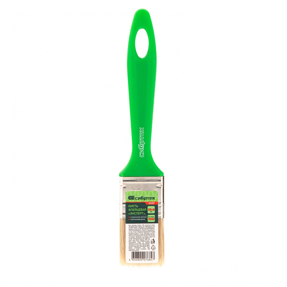 Флейцевая кисть Сибртех «Эксперт» 83307 с натуральной щетиной и пластиковой ручкой, размером 35 х 8 мм, используется для проведения отделочных работ — окрашивания поверхностей, создания гладкого или глянцевого слоя. Оптимальна для обработки небольших участков. Изготовлена из натуральной свиной щетины с добавлением искусственной, поэтому подходит для различных видов ЛКМ.