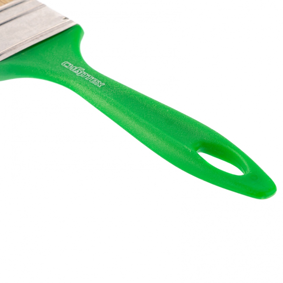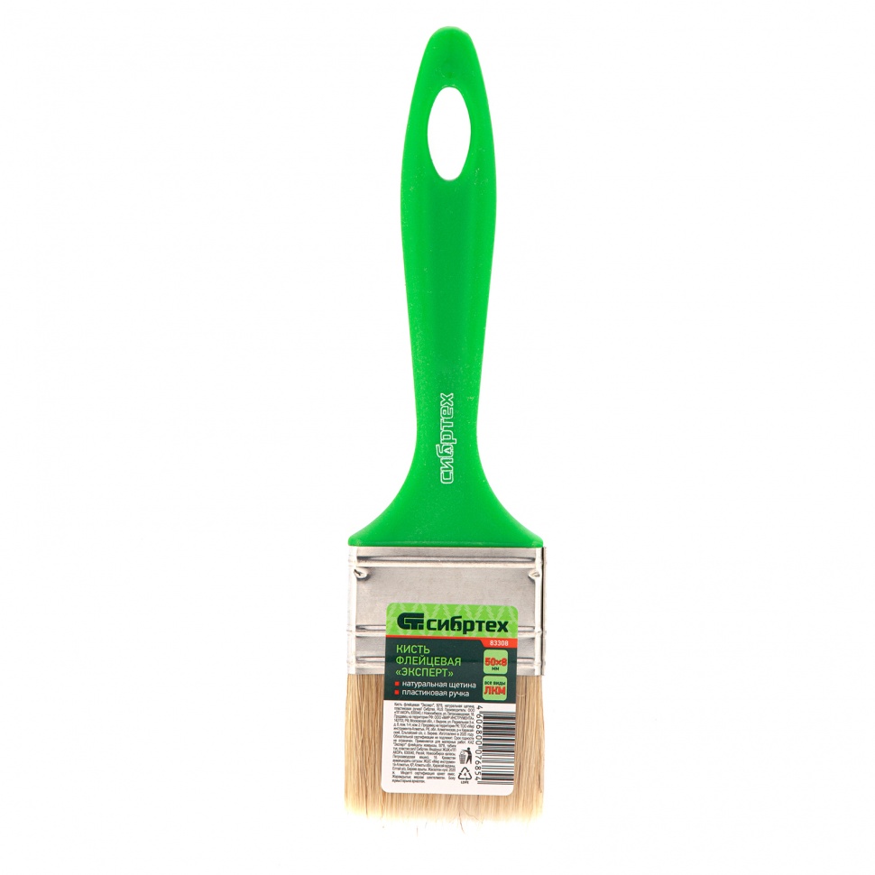 Флейцевая кисть Сибртех «Эксперт» 83308 с натуральной щетиной и пластиковой ручкой, размером 50 х 8 мм, используется для проведения отделочных работ — окрашивания поверхностей, создания гладкого или глянцевого слоя. Оптимальна для обработки небольших участков. Изготовлена из натуральной свиной щетины с добавлением искусственной, поэтому подходит для различных видов ЛКМ.