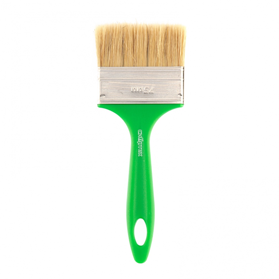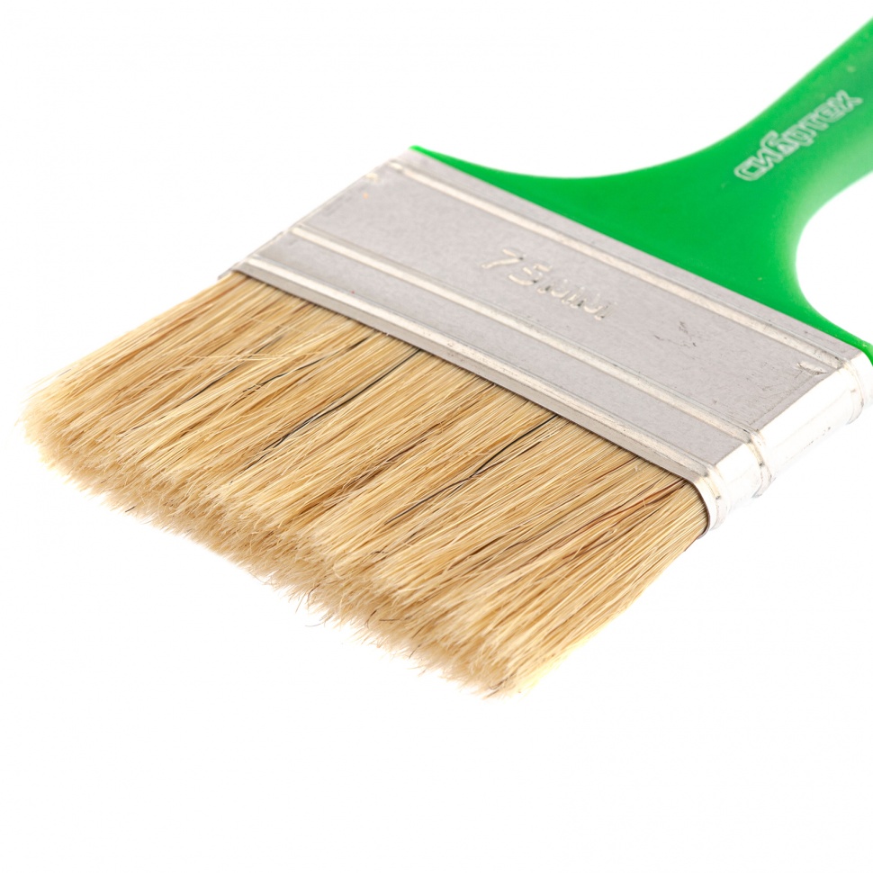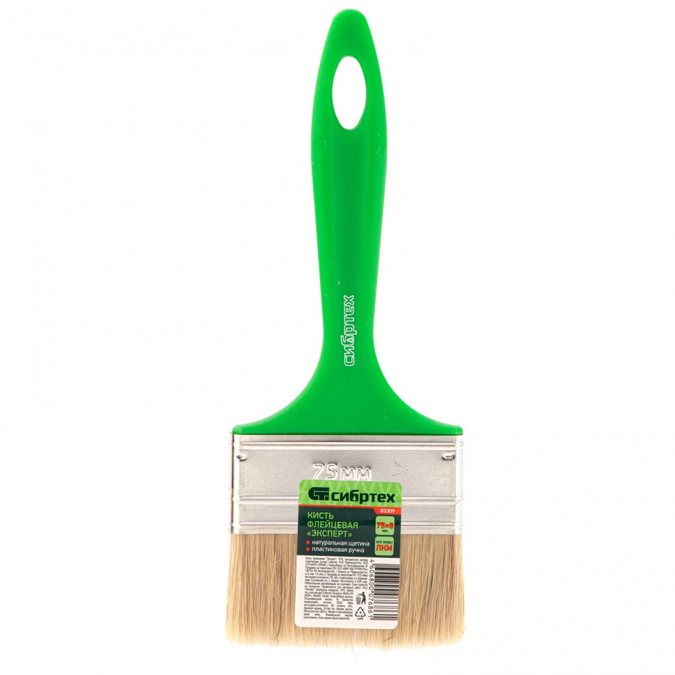 Флейцевая кисть Сибртех «Эксперт» 83309 с натуральной щетиной и пластиковой ручкой, размером 75 х 8 мм, используется для проведения отделочных работ — окрашивания поверхностей, создания гладкого или глянцевого слоя. Оптимальна для обработки небольших участков. Изготовлена из натуральной свиной щетины с добавлением искусственной, поэтому подходит для различных видов ЛКМ.