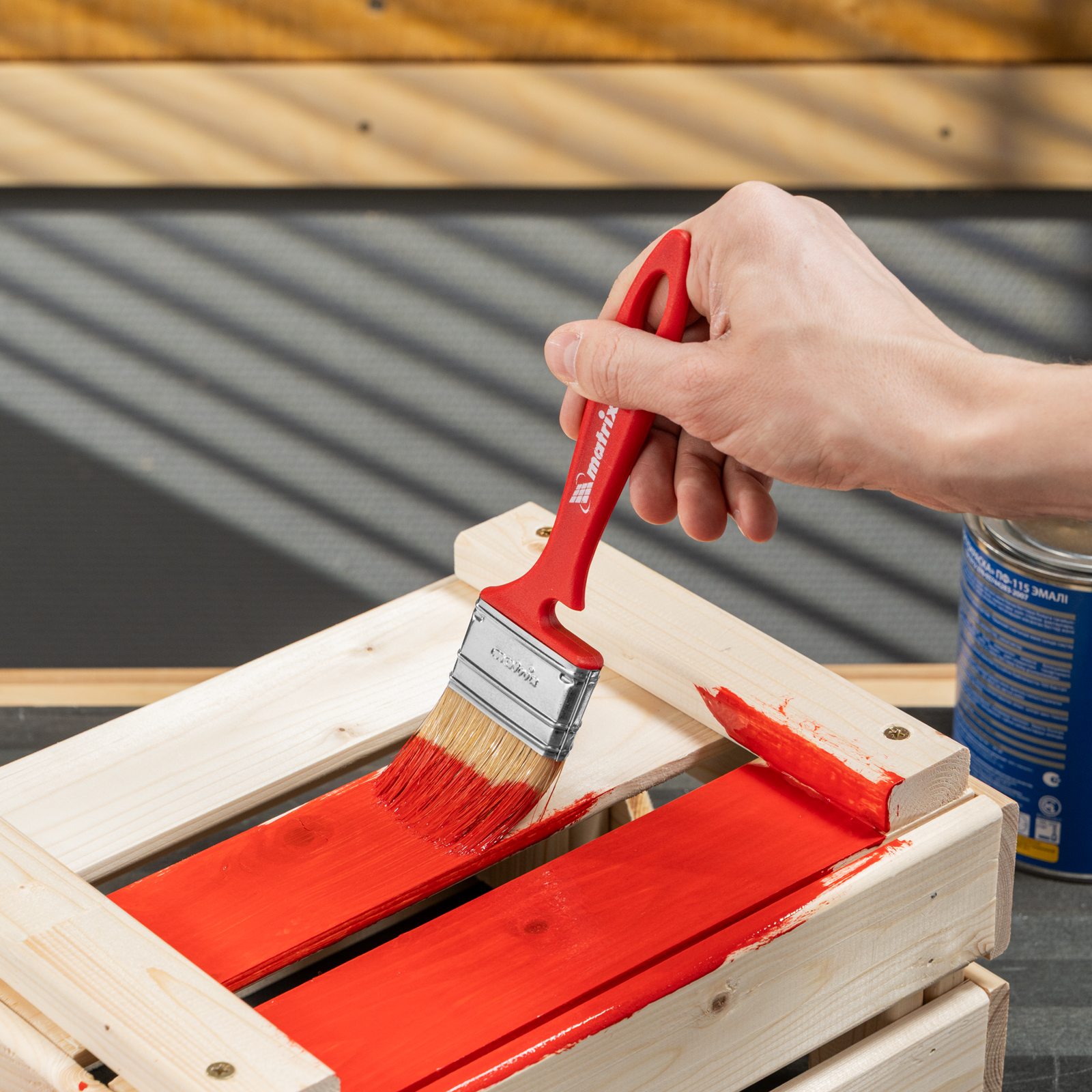 - Эргономичность — форма рукоятки продумана таким образом, чтобы мастер не уставал даже при длительной работе, специальный вырез позволяет зафиксировать кисть на малярном ведре или банке.