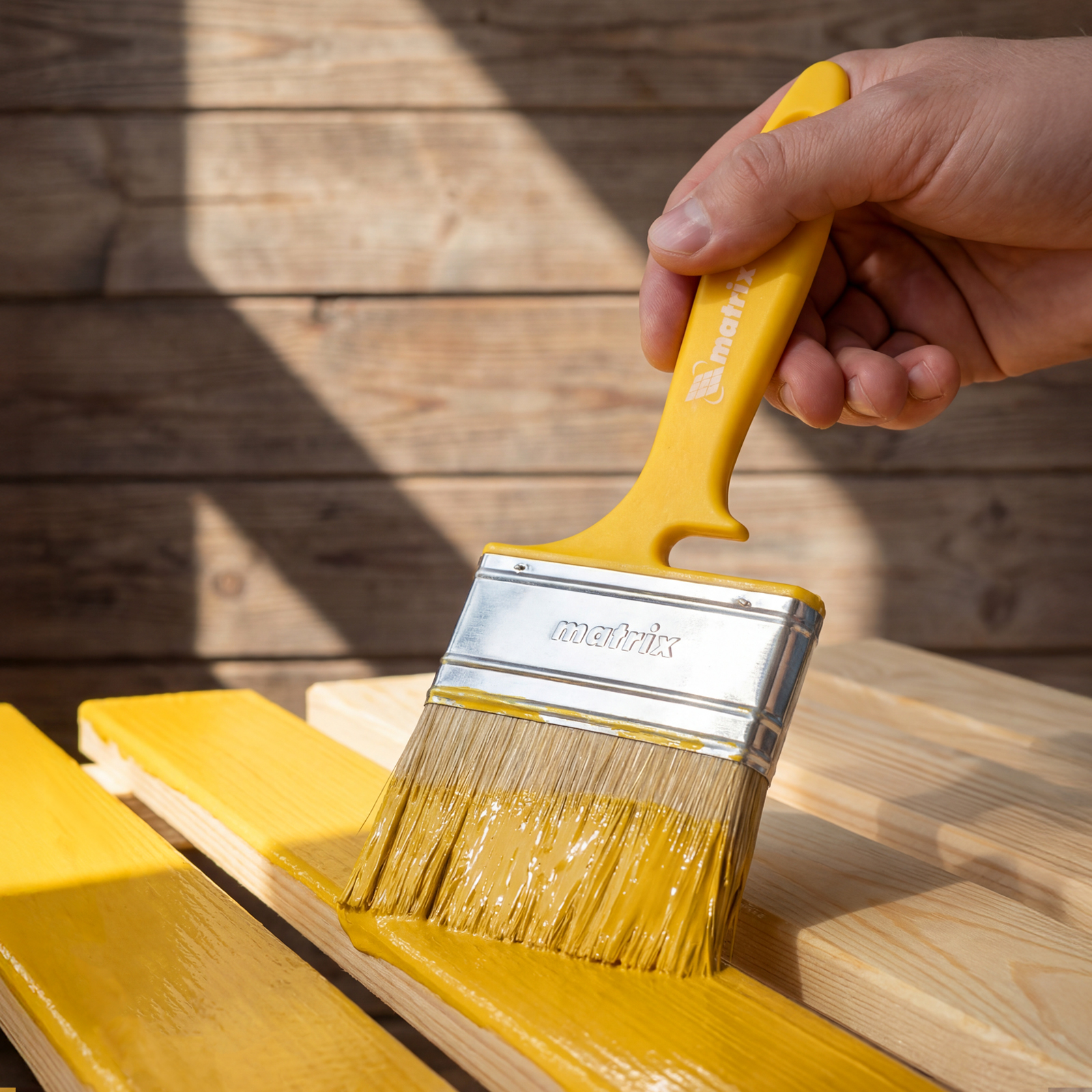 Флейцевая кисть Matrix Color Line «ЛАКИ» 83366 шириной 100 мм и толщиной 12 мм используется для отделочных работ с применением лаков на акриловой, водной и натуральной основе. Ею удобно лакировать небольшие участки. Искусственная щетина отличается повышенной упругостью, поэтому кисть обеспечивает высокое качество работ.