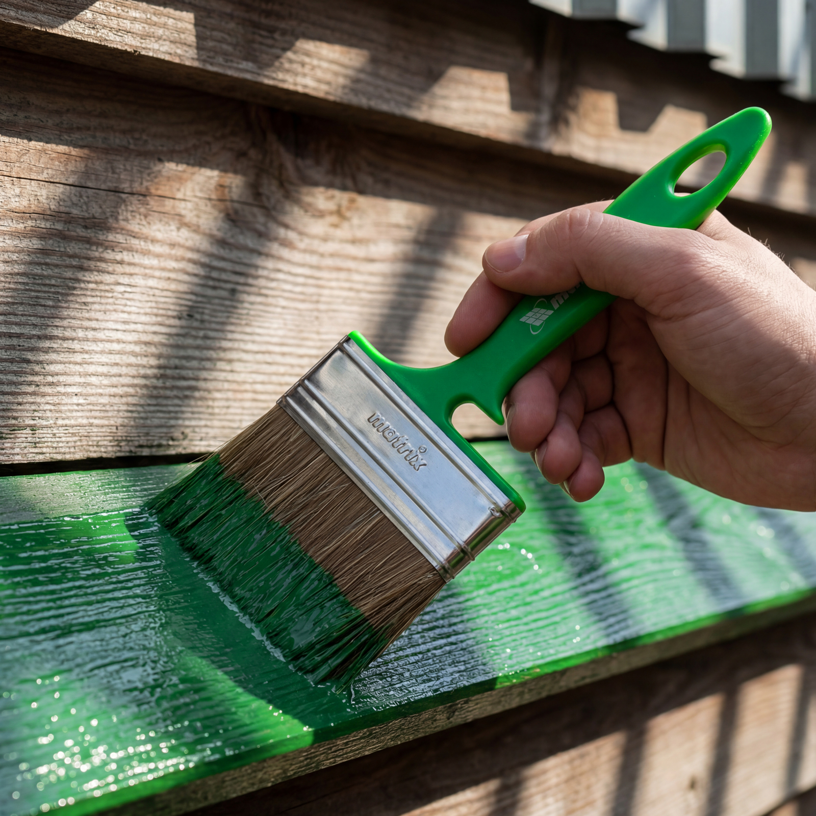 - Продуманная форма рукоятки — благодаря специальному вырезу кисть можно закрепить на банке, ведре или ванночке.