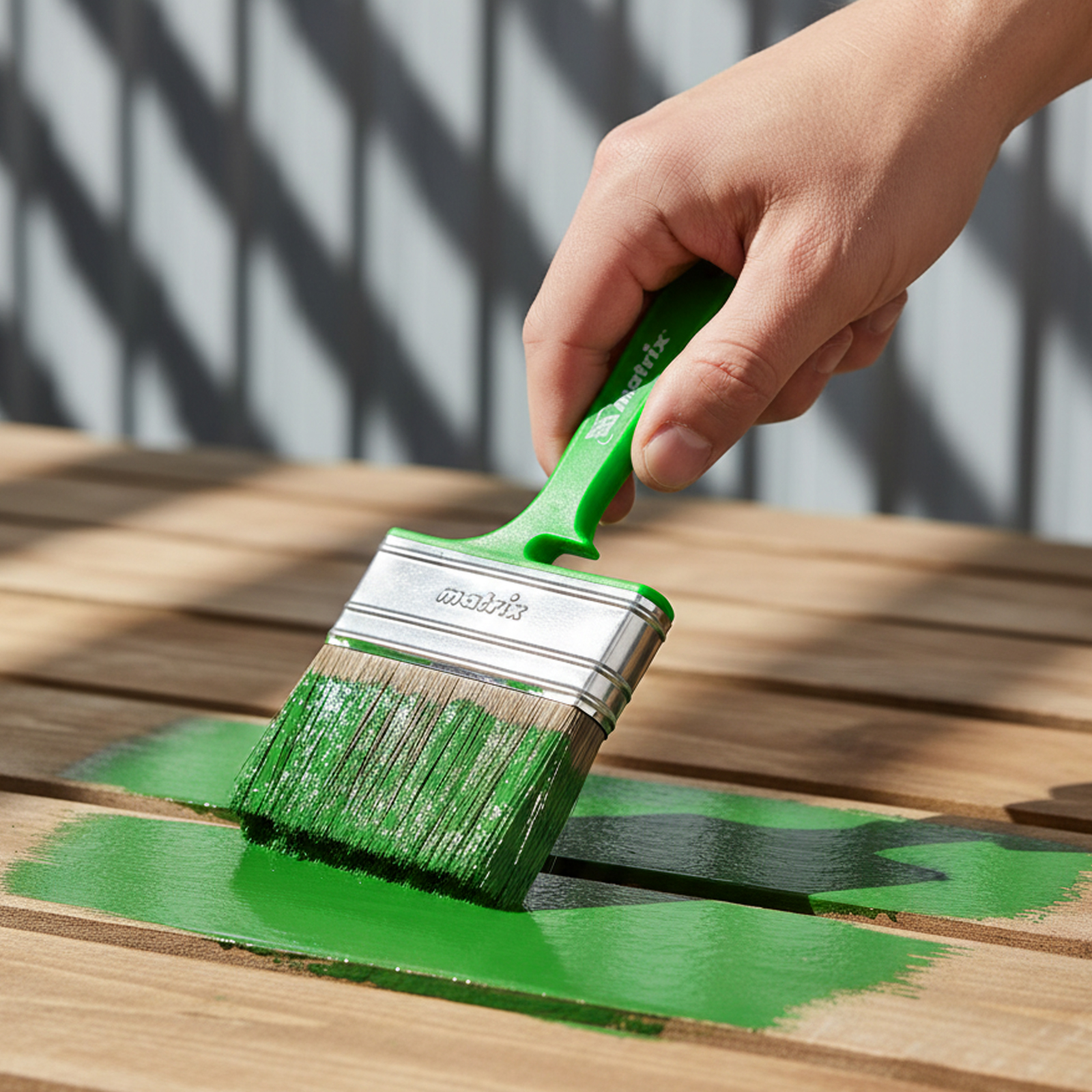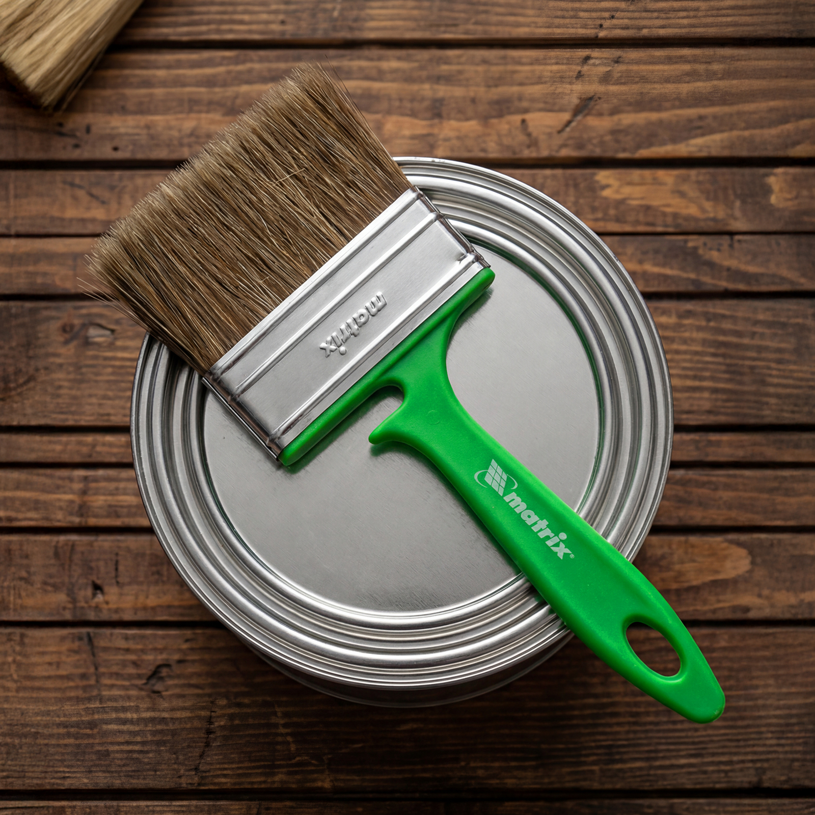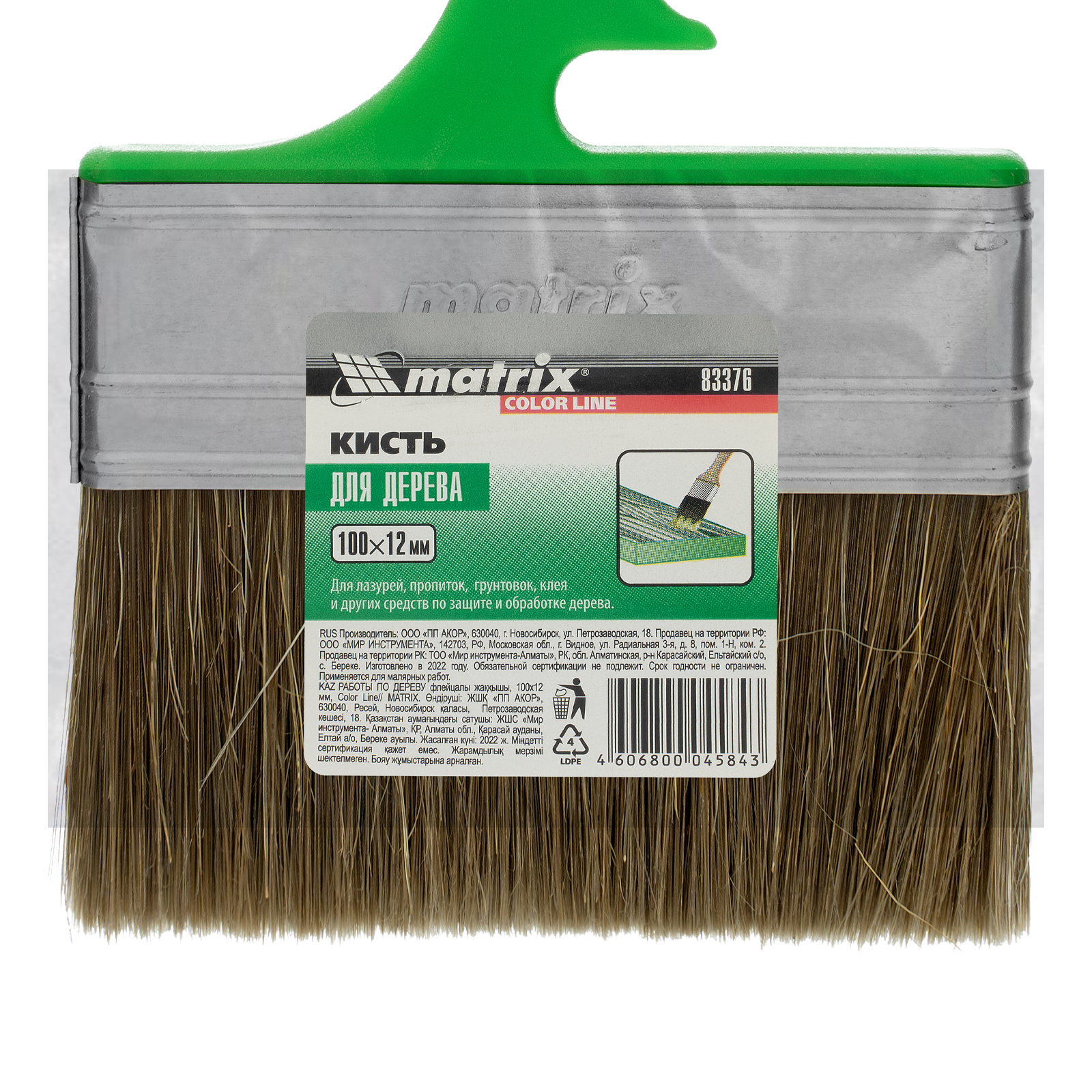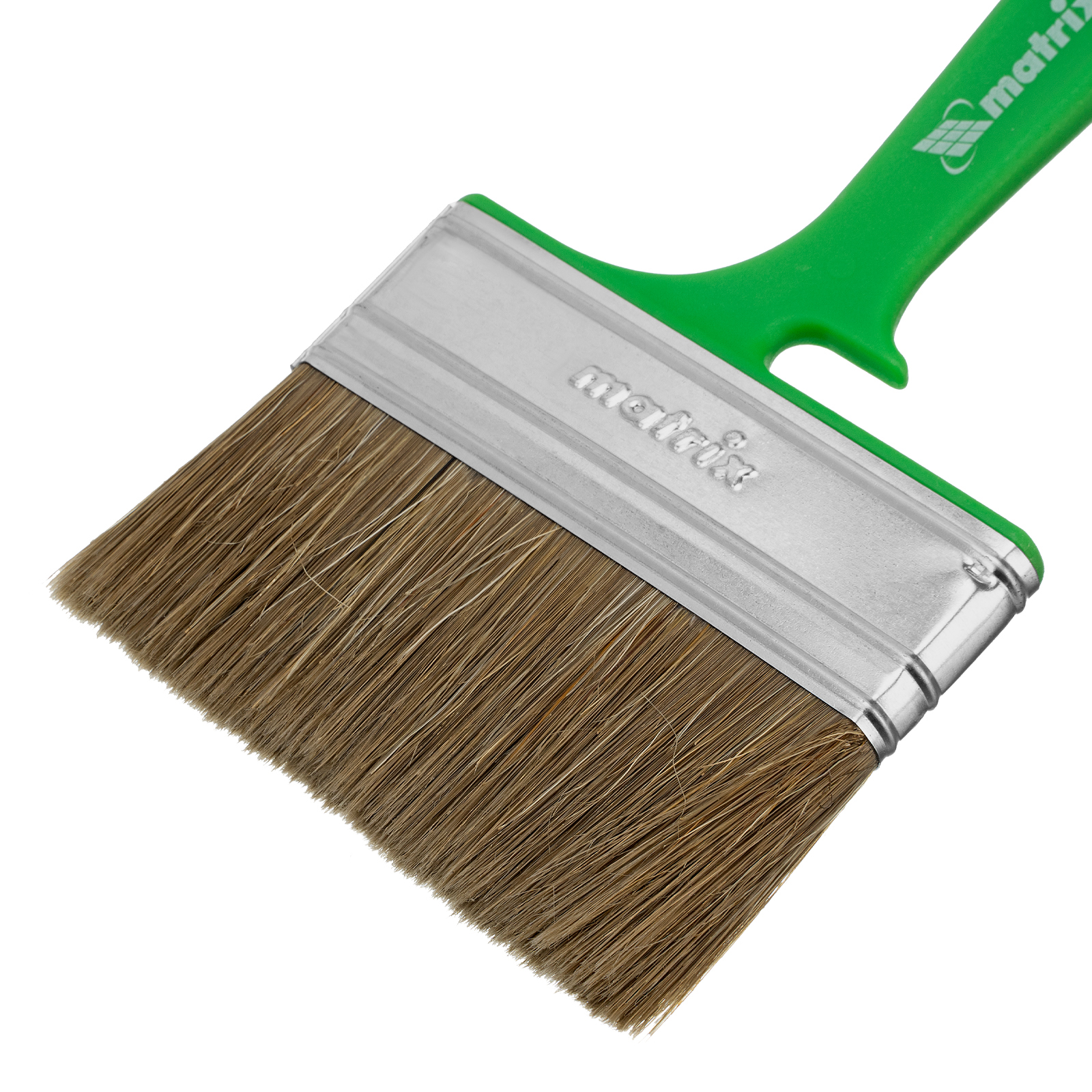 Флейцевая кисть Matrix Color Line «РАБОТЫ ПО ДЕРЕВУ» 83376 шириной 100 мм и толщиной 12 мм используется с любыми видами пропиток, клеев, грунтовок и других деревообрабатывающих составов. Комбинированная щетина расщеплена на кончиках и содержит натуральные волокна, поэтому кисть хорошо впитывает и отдает лакокрасочные материалы. Искусственный ворс предохраняет щетину от деформации при использовании водных составов. Высокая плотность щетины обеспечивает хорошую продуктивность работ.