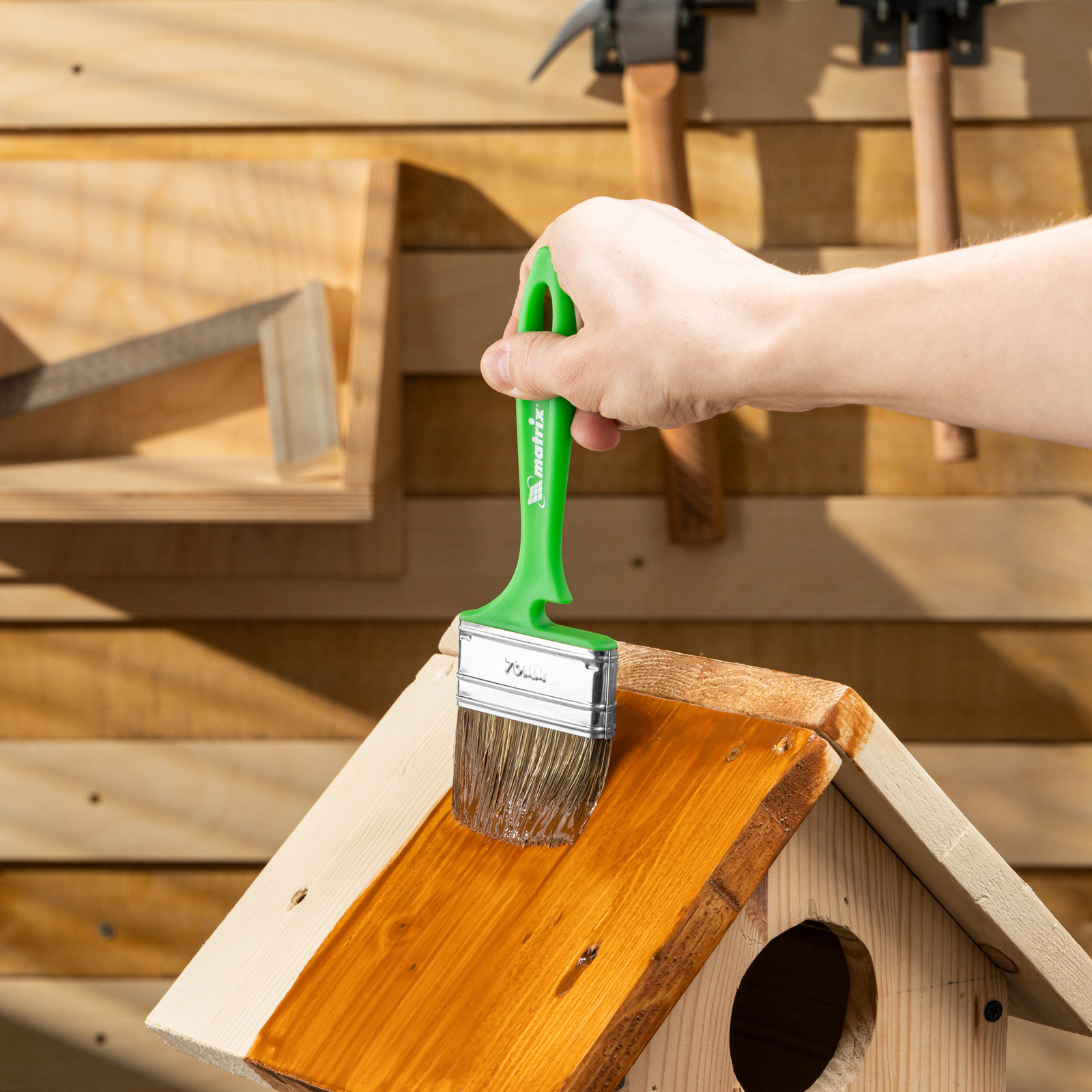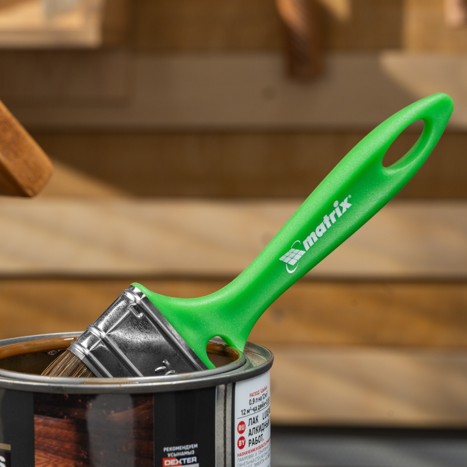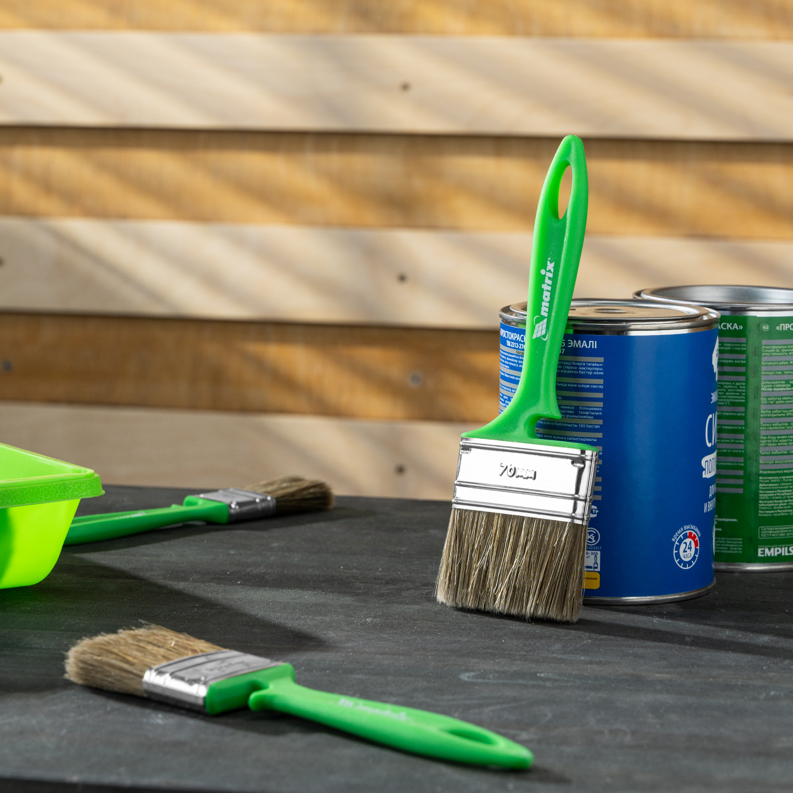- Продуманная форма рукоятки — благодаря специальному вырезу кисть можно закрепить на банке, ведре или ванночке.