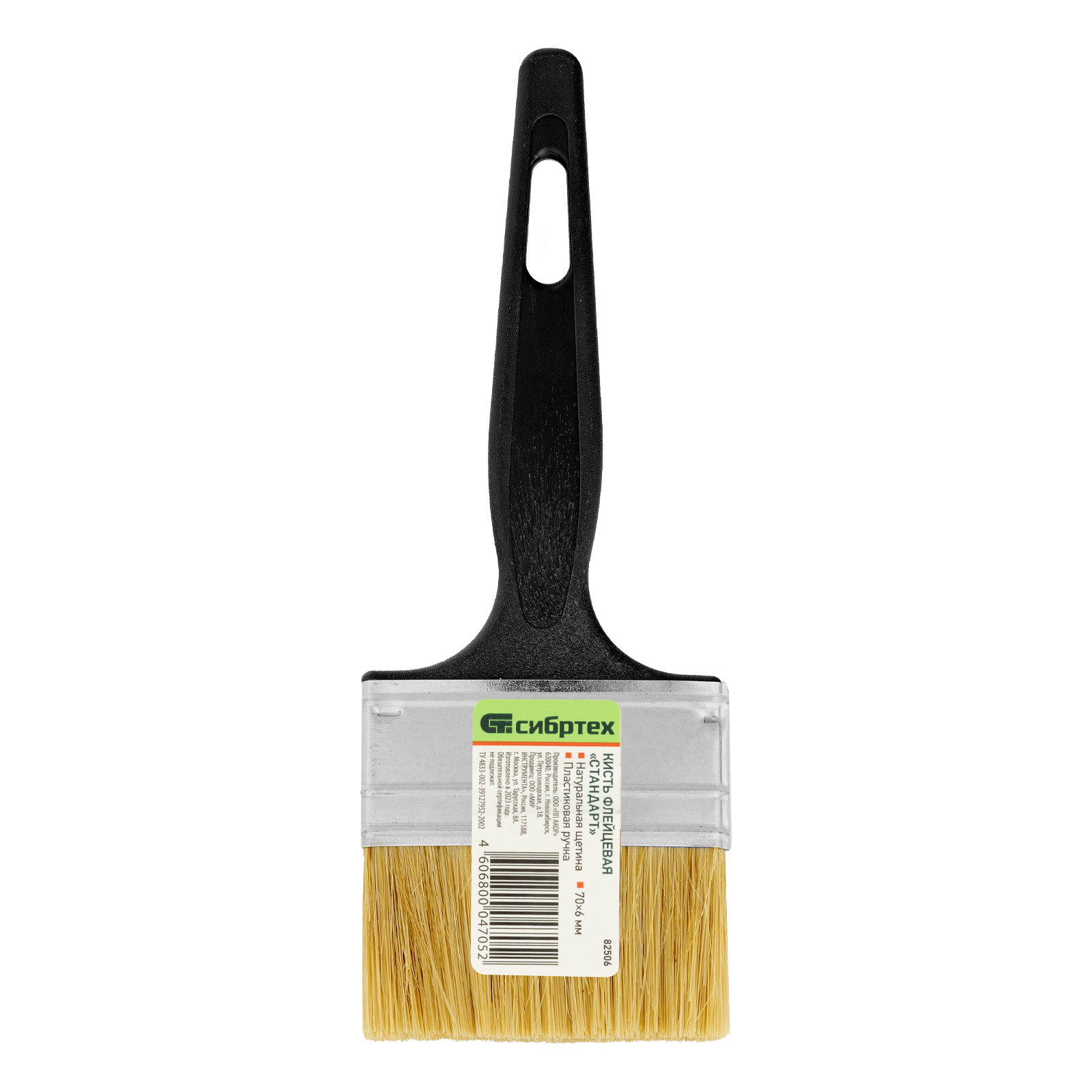 Флейцевая кисть Сибртех «Стандарт» 82506 размером 70 х 6 мм, с натуральной щетиной и пластиковой ручкой, оптимальна для финишной обработки поверхностей и устранения мелких дефектов после использования кистей с более жесткой щетиной. Рабочая часть из свиной щетины с добавлением искусственной устойчива к истиранию и воздействию растворителей.
