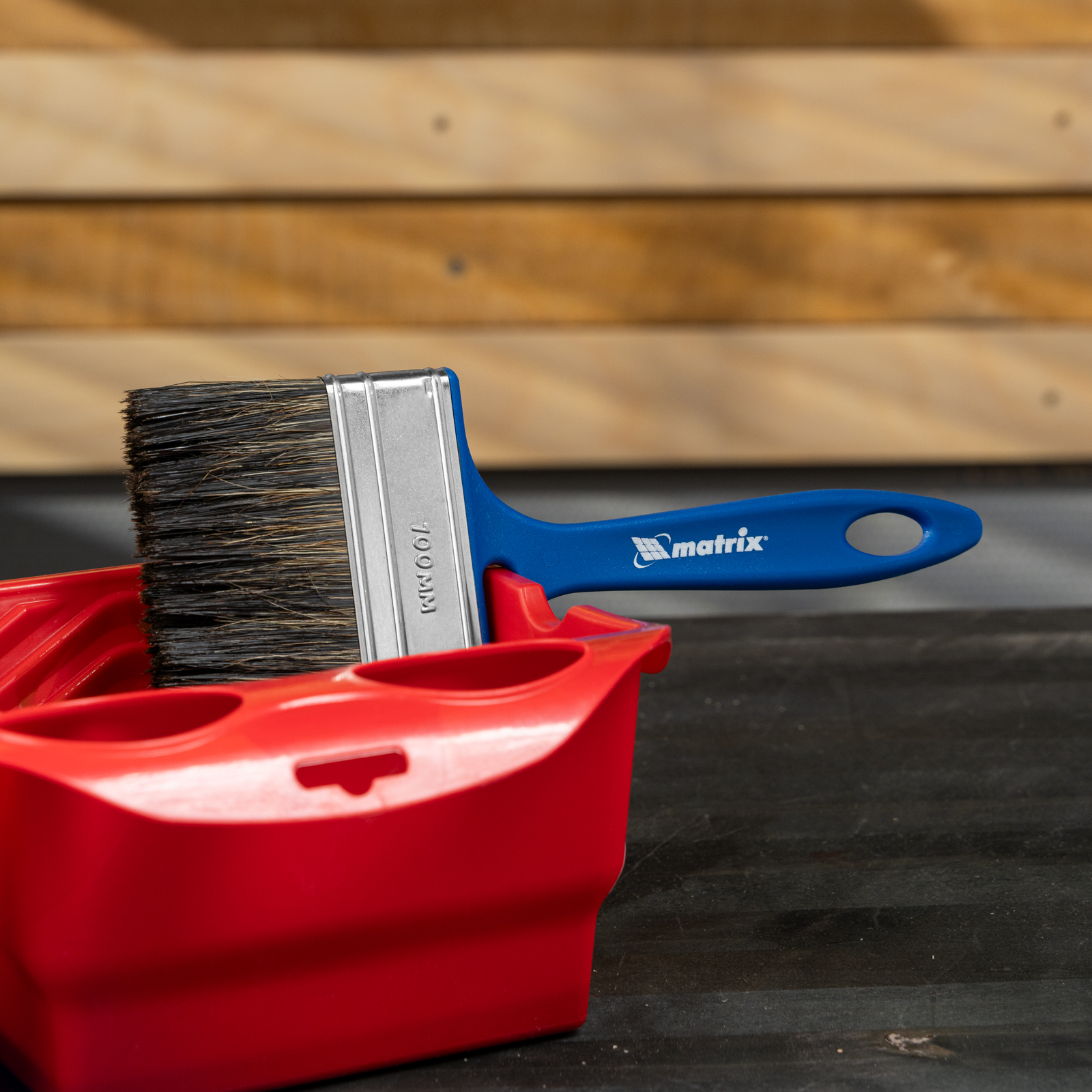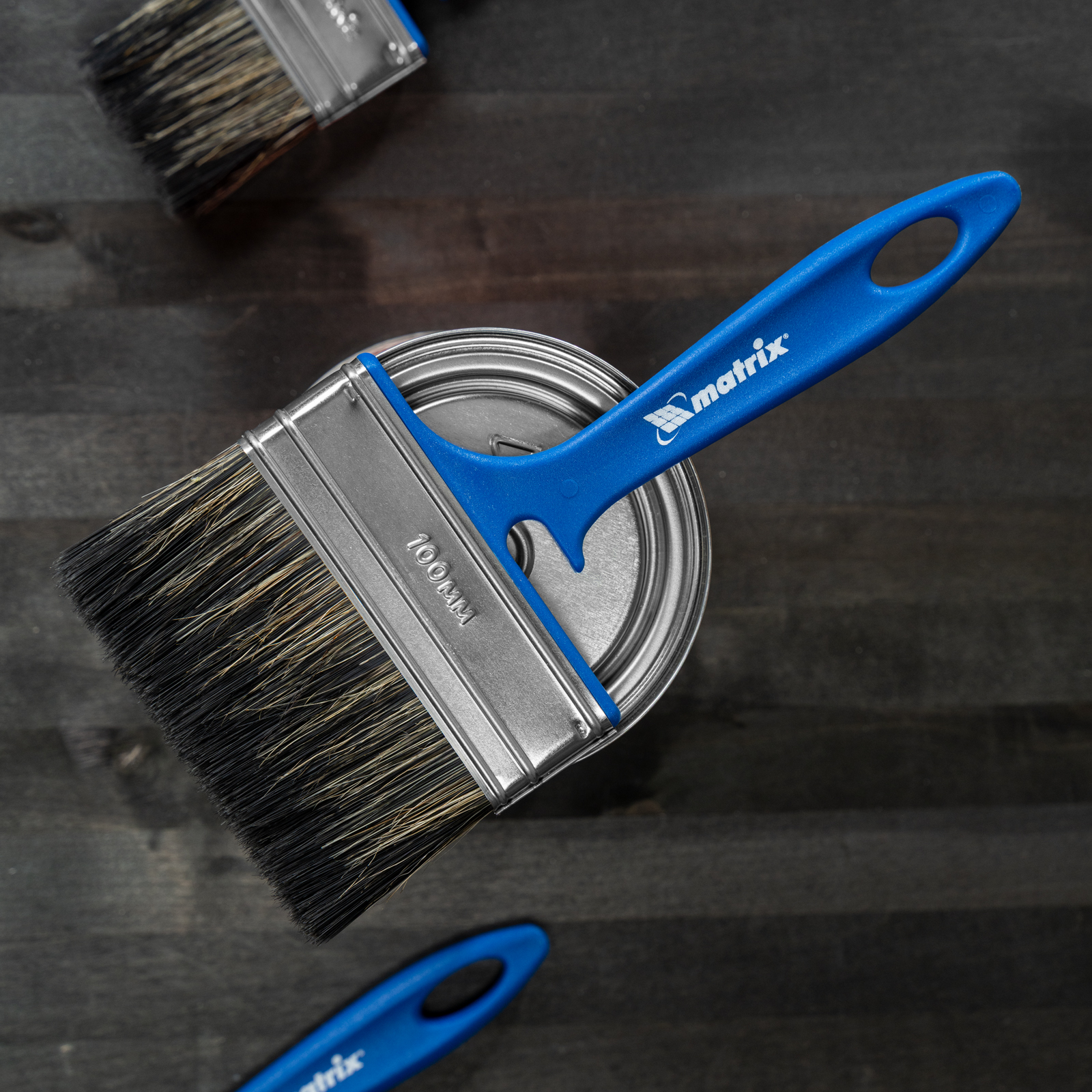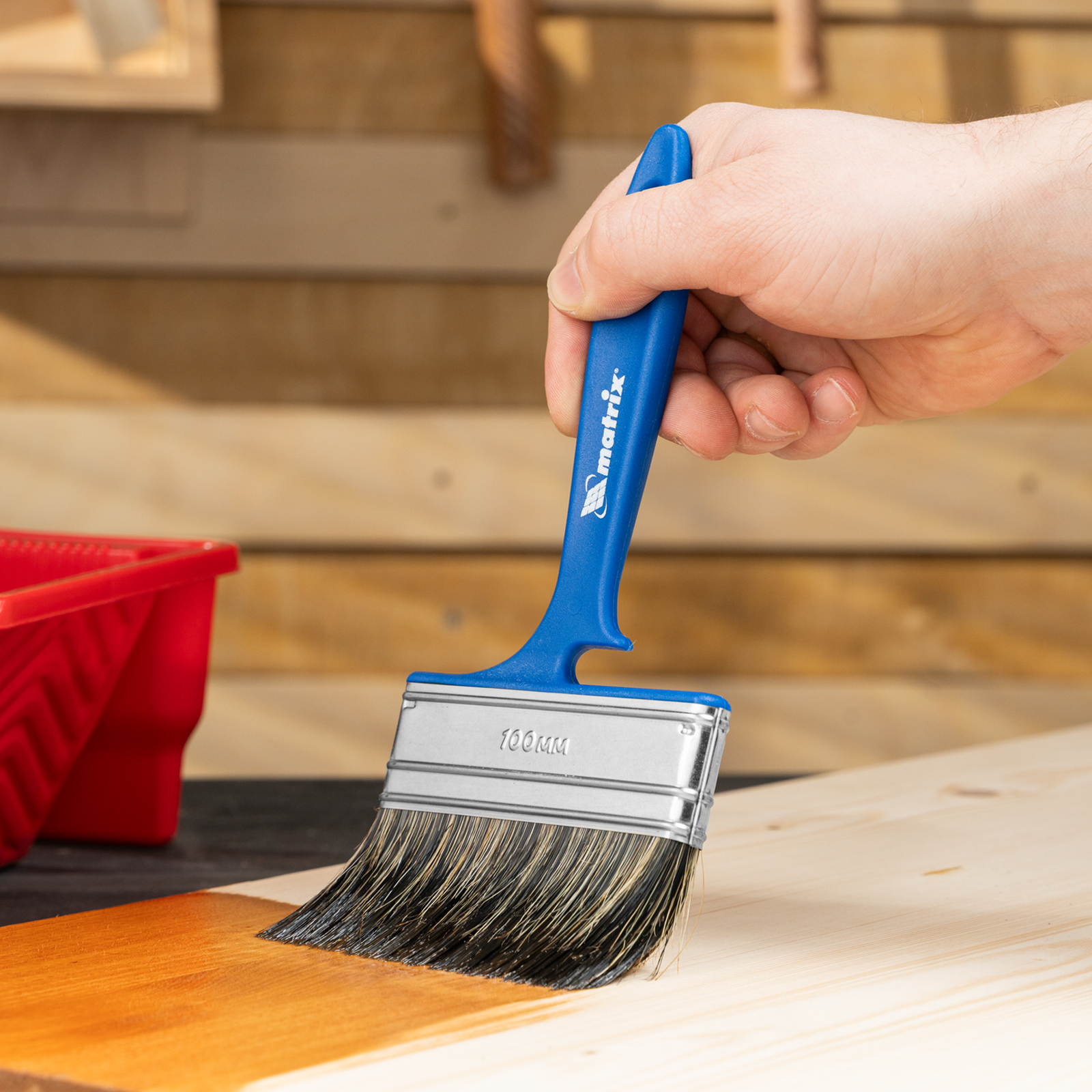 Флейцевая кисть Matrix Color Line «ВОДНЫЕ КРАСКИ» 83348 шириной 100 мм и толщиной 12 мм разработана специально для использования с составами на водной основе, в том числе деревообрабатывающими. Комбинированная щетина оптимальна для работы с водными лакокрасочными материалами — искусственные волокна препятствуют деформации, а натуральные удерживают большой объем краски. Кисть подходит для работы на небольших участках или в труднодоступных местах.
