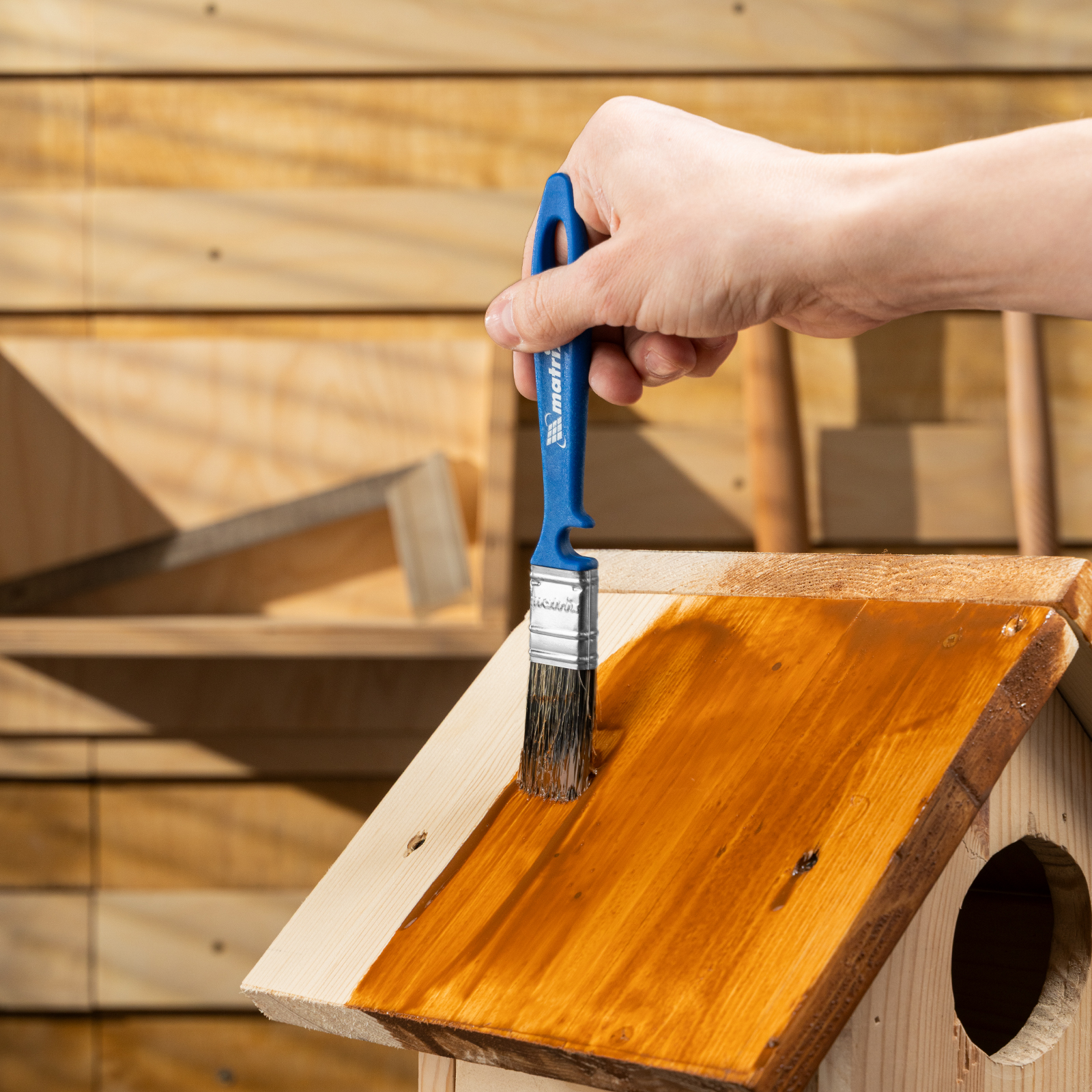 Флейцевая кисть Matrix Color Line «ВОДНЫЕ КРАСКИ» 83344 шириной 25 мм и толщиной 10 мм разработана специально для использования с составами на водной основе, в том числе деревообрабатывающими. Комбинированная щетина оптимальна для работы с водными лакокрасочными материалами — искусственные волокна препятствуют деформации, а натуральные удерживают большой объем краски. Кисть подходит для работы на небольших участках или в труднодоступных местах.