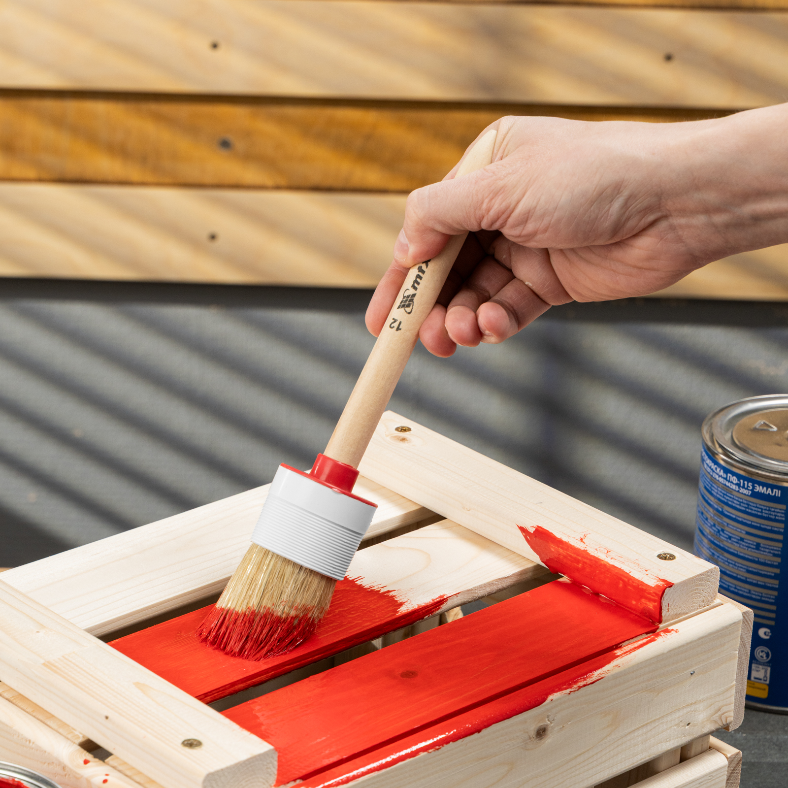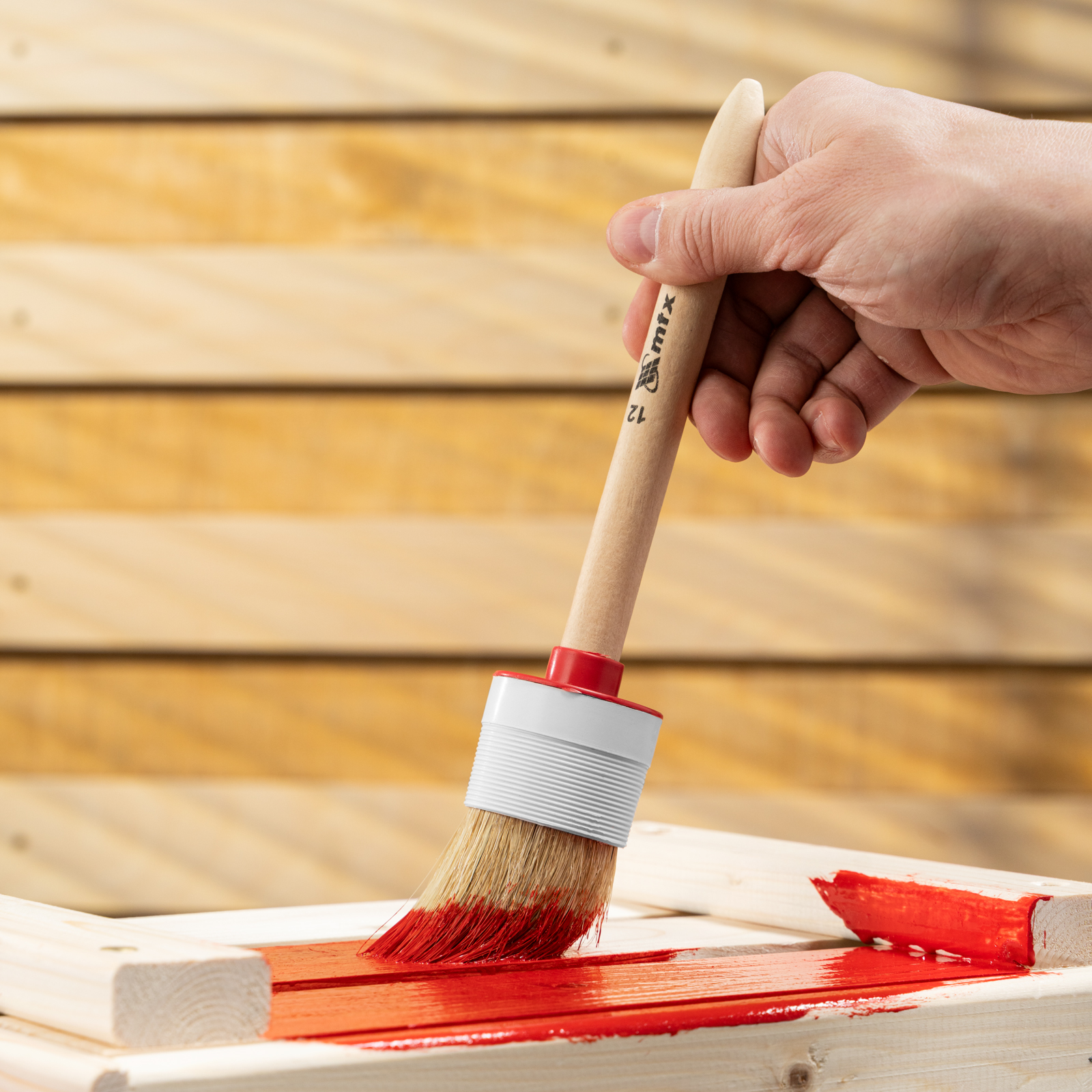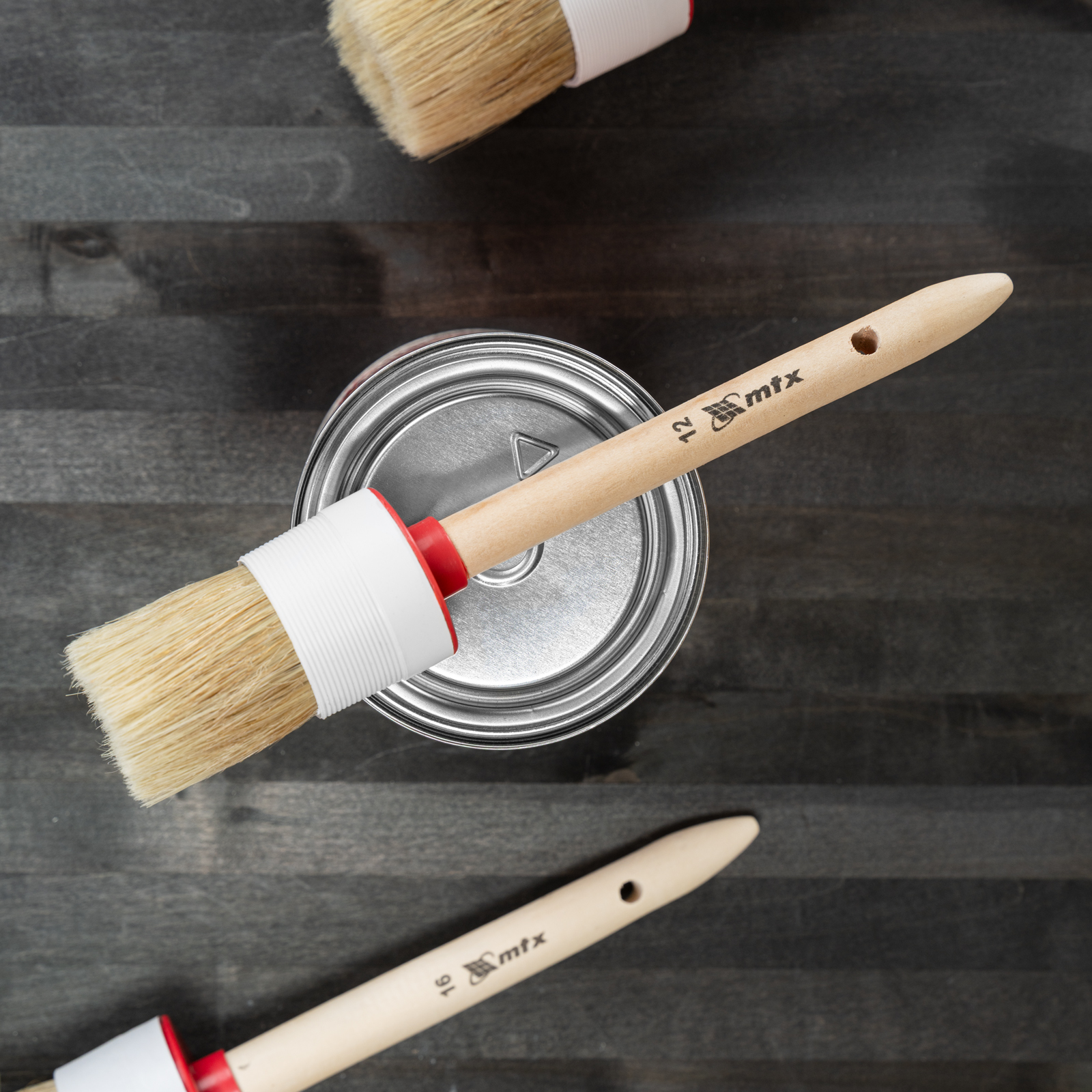 Круглая кисть MTX №12 82082 диаметром 45 мм, с натуральной щетиной и деревянной ручкой, пригодится в быту для окрашивания узких длинных поверхностей. Светлая натуральная свиная щетина с добавлением искусственной обладает высокой износоустойчивостью и может использоваться для нанесения красок с содержанием растворителей, а также масляных красок и лаков.