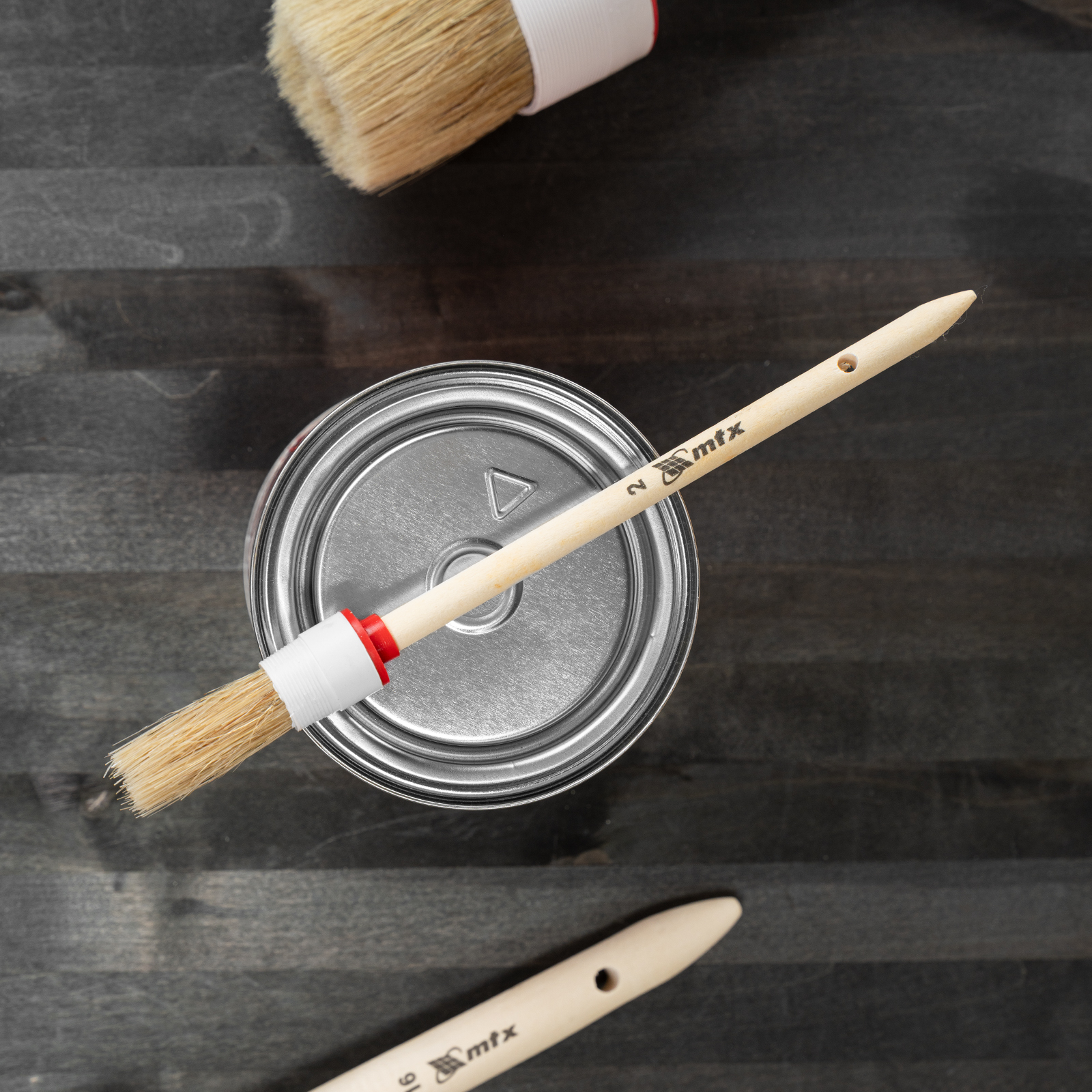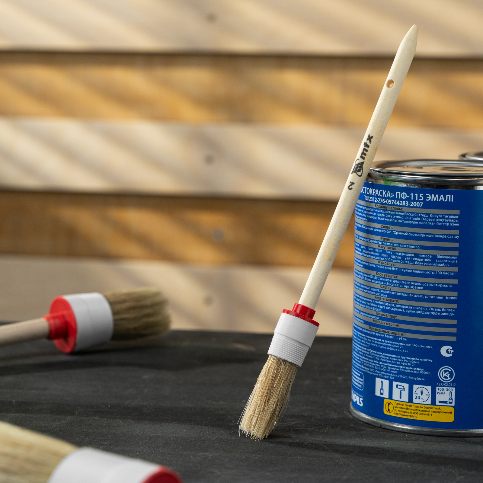 Круглая кисть MTX №2 82072 диаметром 20 мм, с натуральной щетиной и деревянной ручкой, пригодится в быту для окрашивания узких длинных поверхностей. Светлая натуральная свиная щетина с добавлением искусственной обладает высокой износоустойчивостью и может использоваться для нанесения красок с содержанием растворителей, а также масляных красок и лаков.