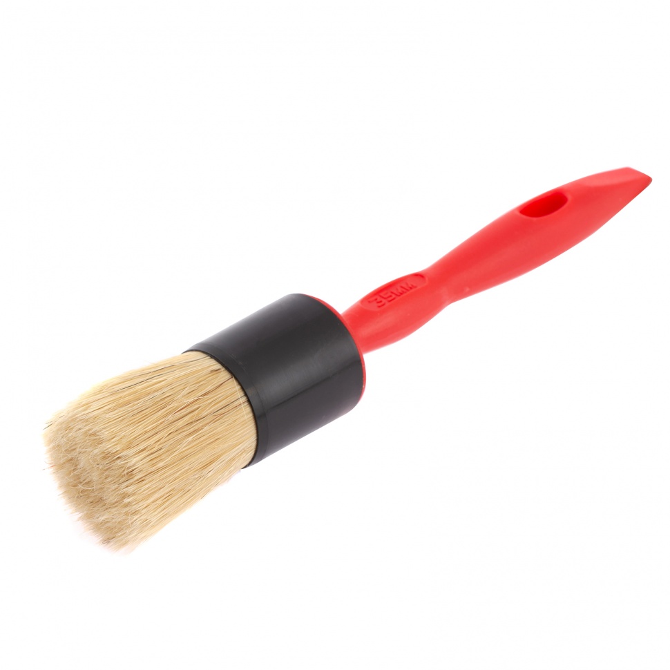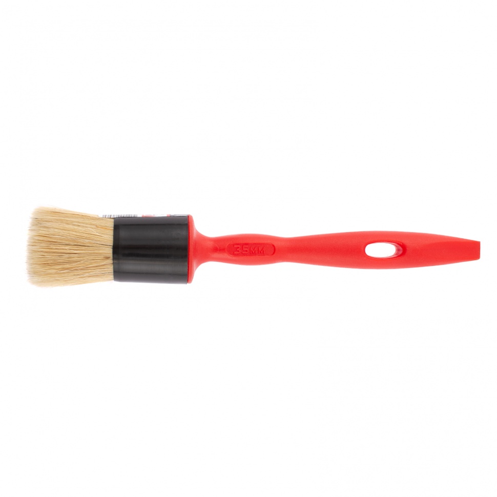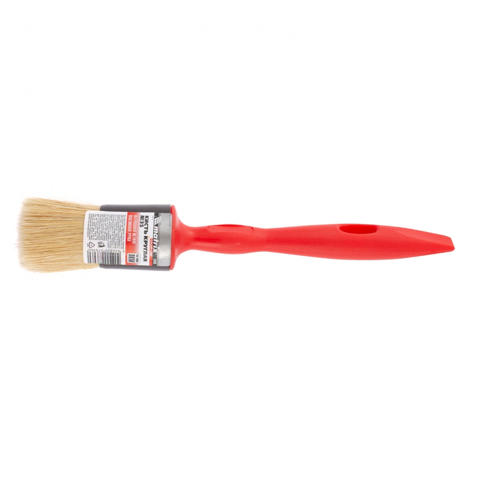 Круглая кисть Matrix Color Line №35 83409 с натуральной щетиной и пластиковой ручкой применяется для окрашивания длинных узких поверхностей любыми видами лакокрасочных материалов. За счет плотной набивки пучка кисть хорошо впитывает и отдает краску. Удлиненная рукоятка упрощает работу в малодоступных местах.