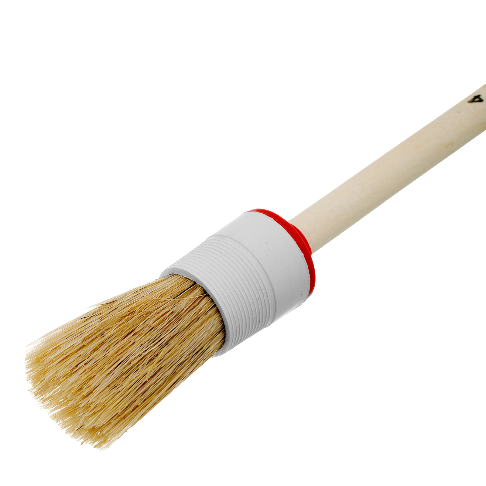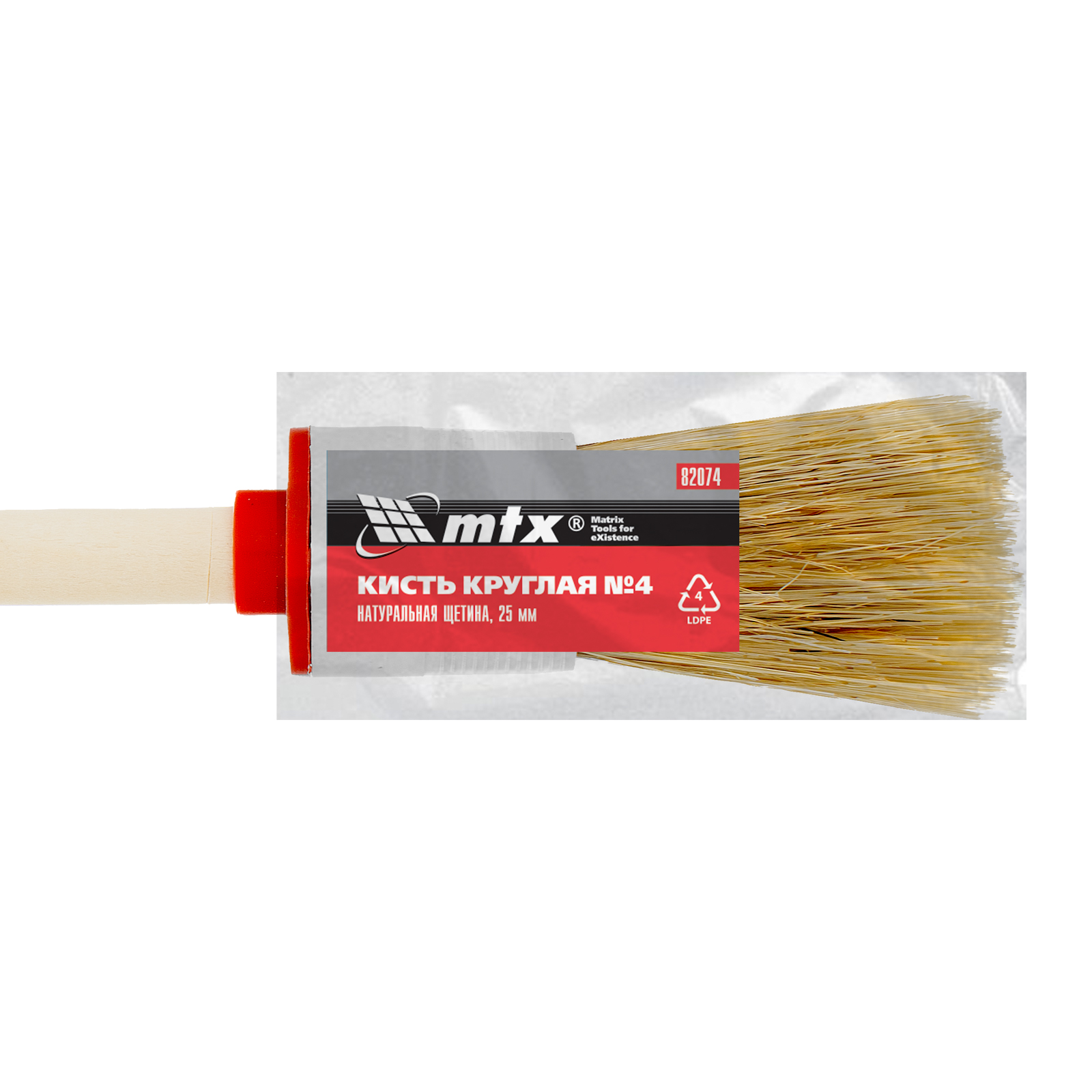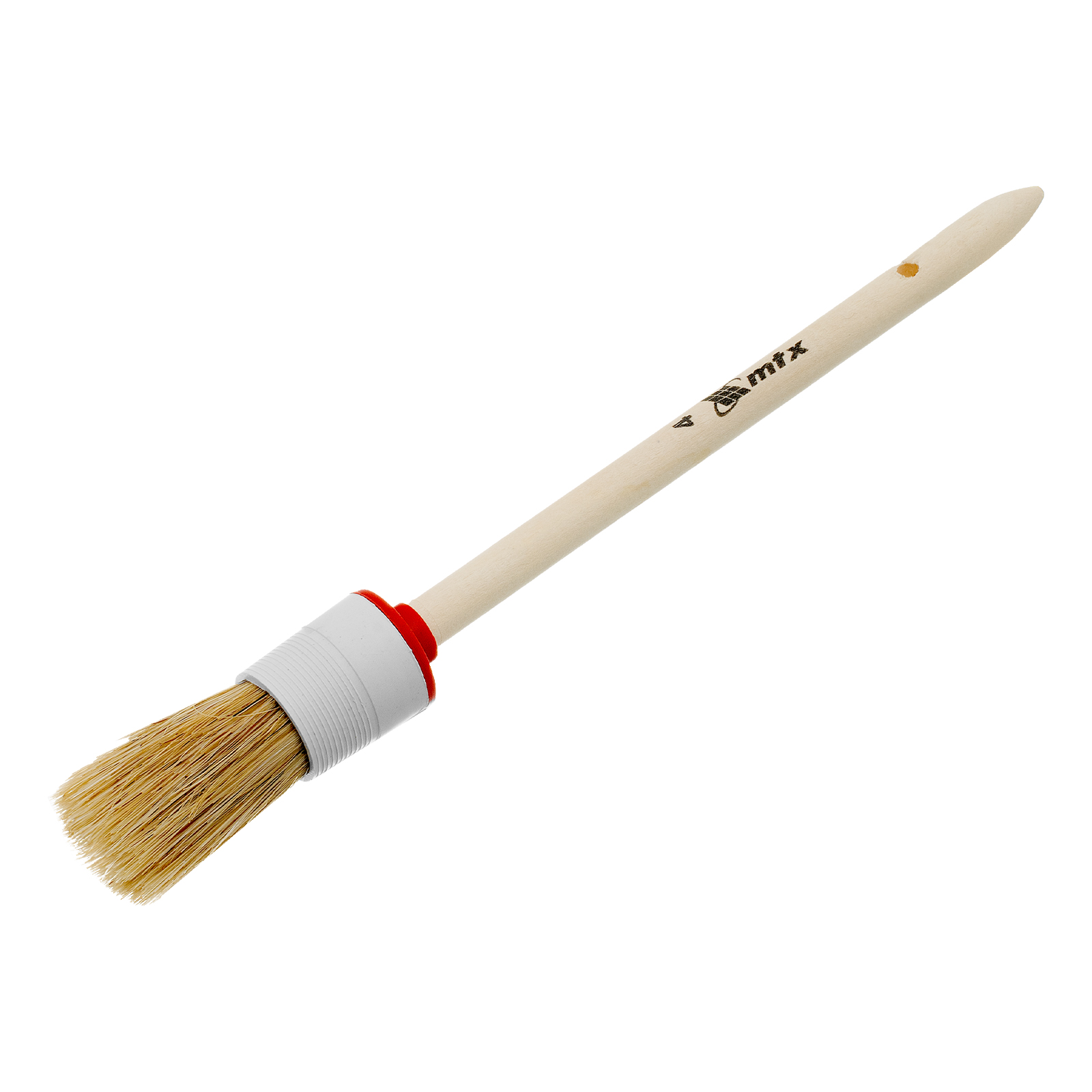 Круглая кисть MTX №4 82074 диаметром 25 мм, с натуральной щетиной и деревянной ручкой, пригодится в быту для окрашивания узких длинных поверхностей. Светлая натуральная свиная щетина с добавлением искусственной обладает высокой износоустойчивостью и может использоваться для нанесения красок с содержанием растворителей, а также масляных красок и лаков.