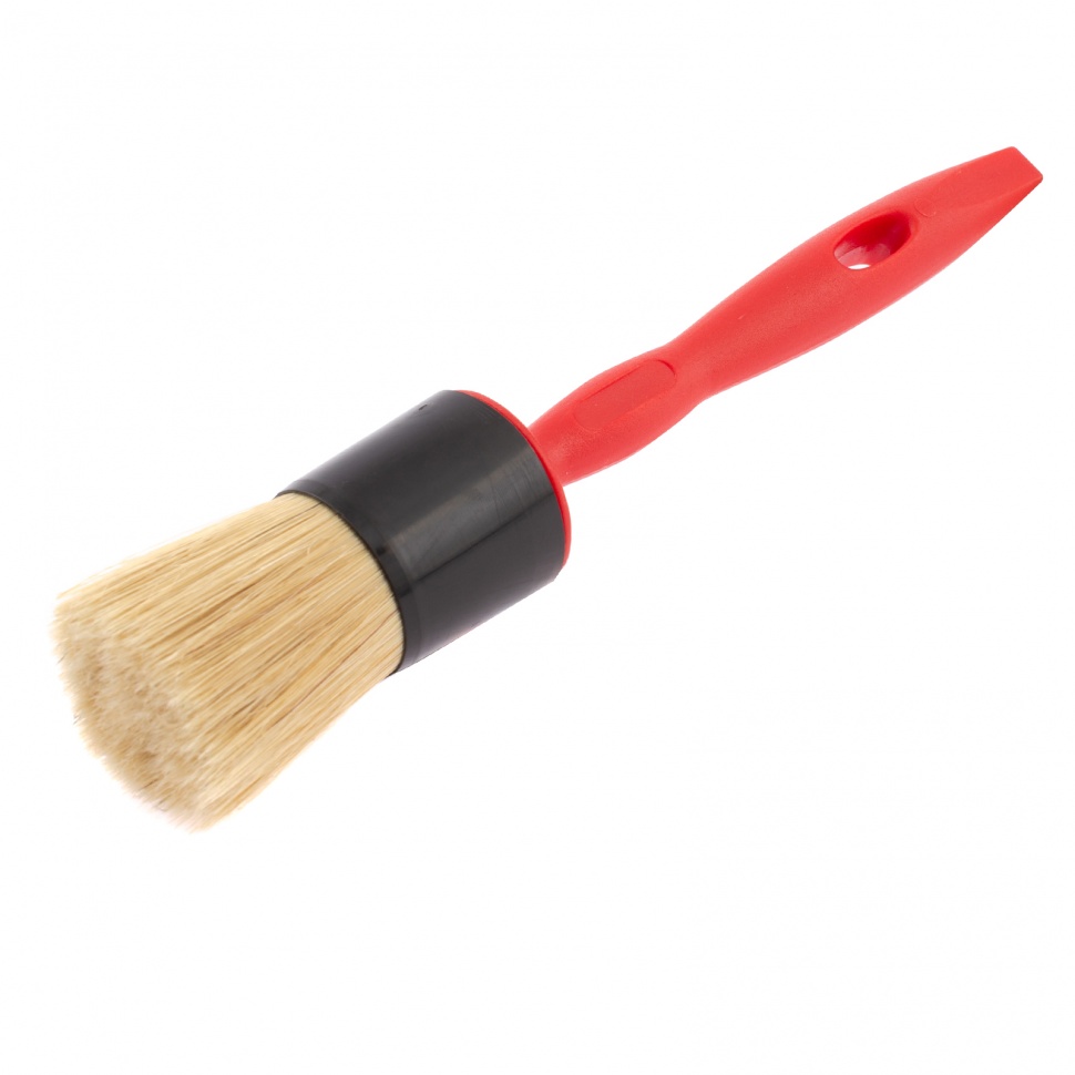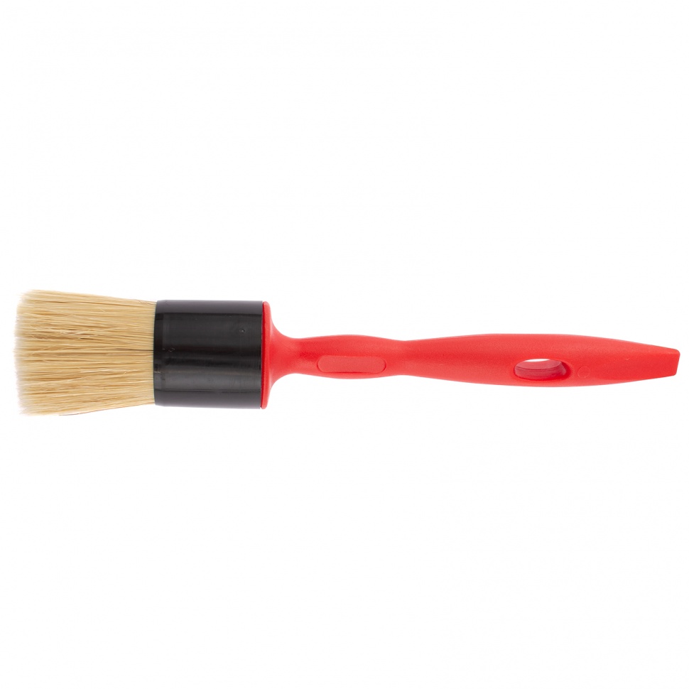 - Возможность интенсивного использования — щетина проклеена тщательно подобранным эпоксидным клеем, удерживается с помощью клиньев и бандажа, поэтому кисть выдерживает высокие нагрузки.