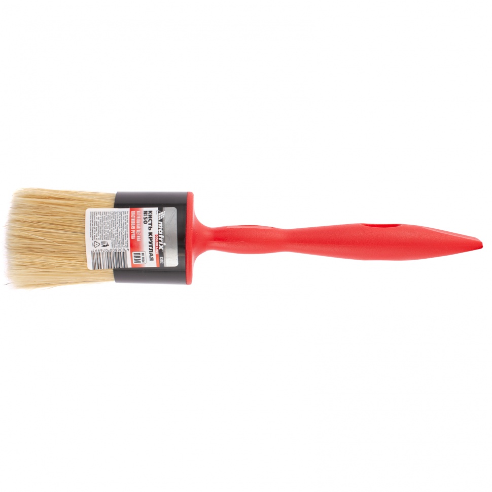 Круглая кисть Matrix Color Line №50 83412 с натуральной щетиной и пластиковой ручкой применяется для окрашивания длинных узких поверхностей любыми видами лакокрасочных материалов. За счет плотной набивки пучка кисть хорошо впитывает и отдает краску. Удлиненная рукоятка упрощает работу в малодоступных местах.