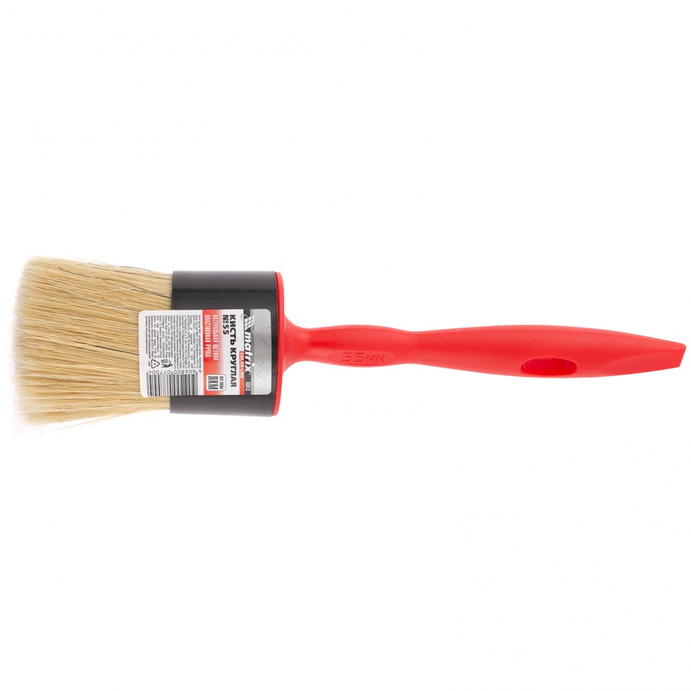 Круглая кисть Matrix Color Line №55 83413 с натуральной щетиной и пластиковой ручкой применяется для окрашивания длинных узких поверхностей любыми видами лакокрасочных материалов. За счет плотной набивки пучка кисть хорошо впитывает и отдает краску. Удлиненная рукоятка упрощает работу в малодоступных местах.