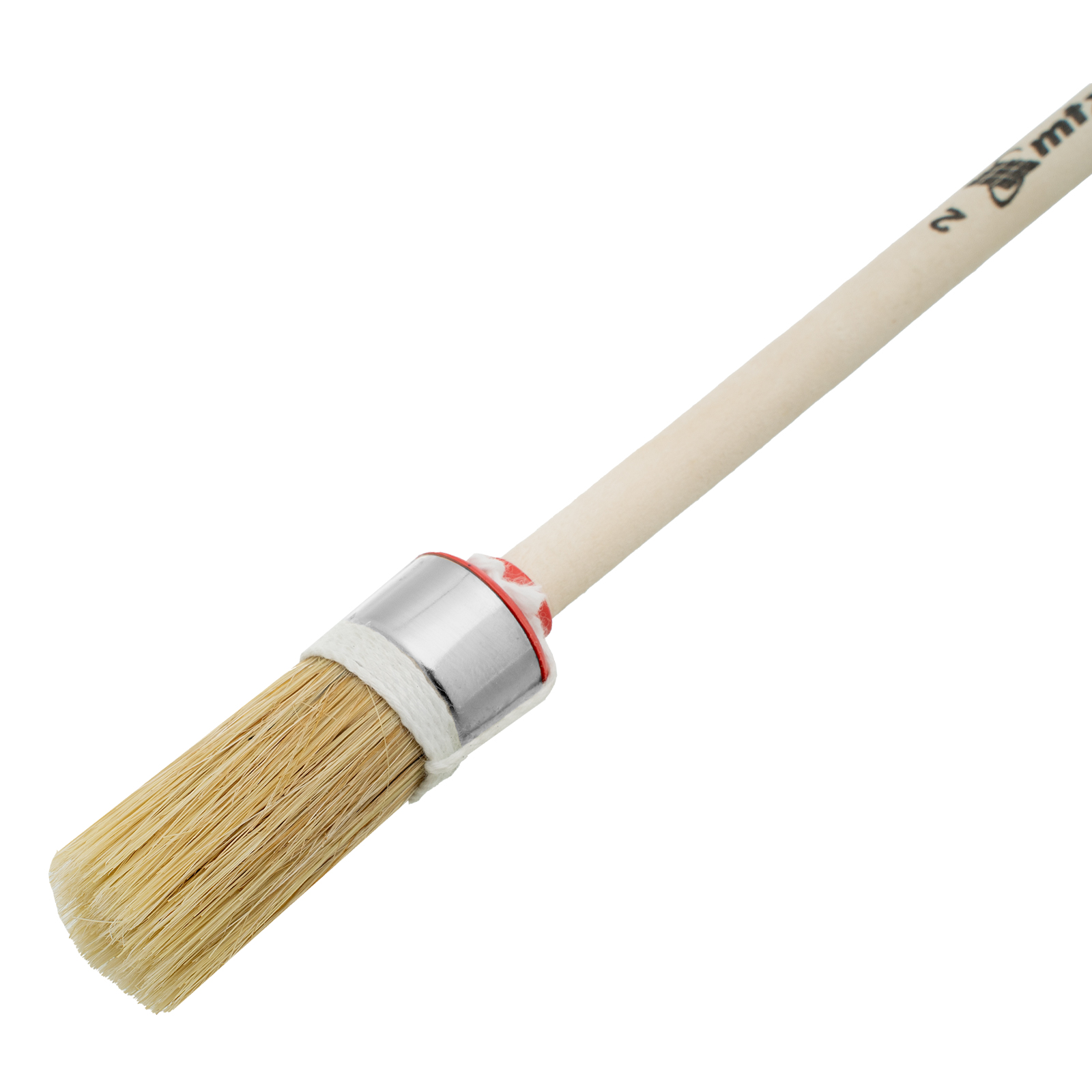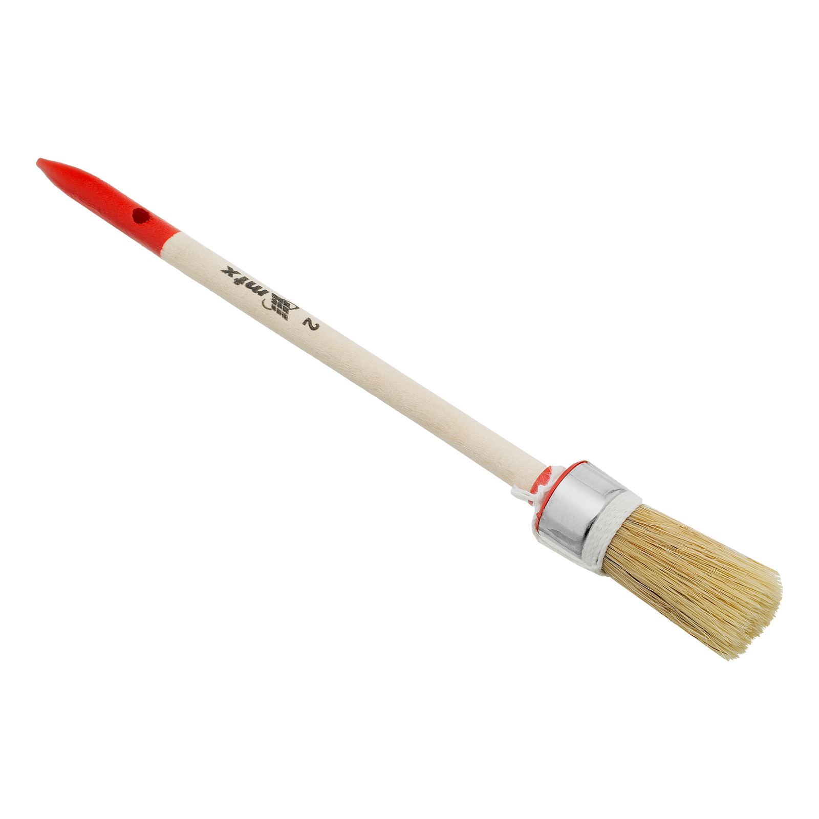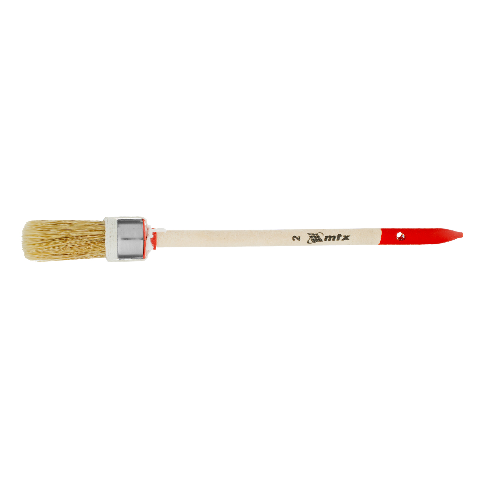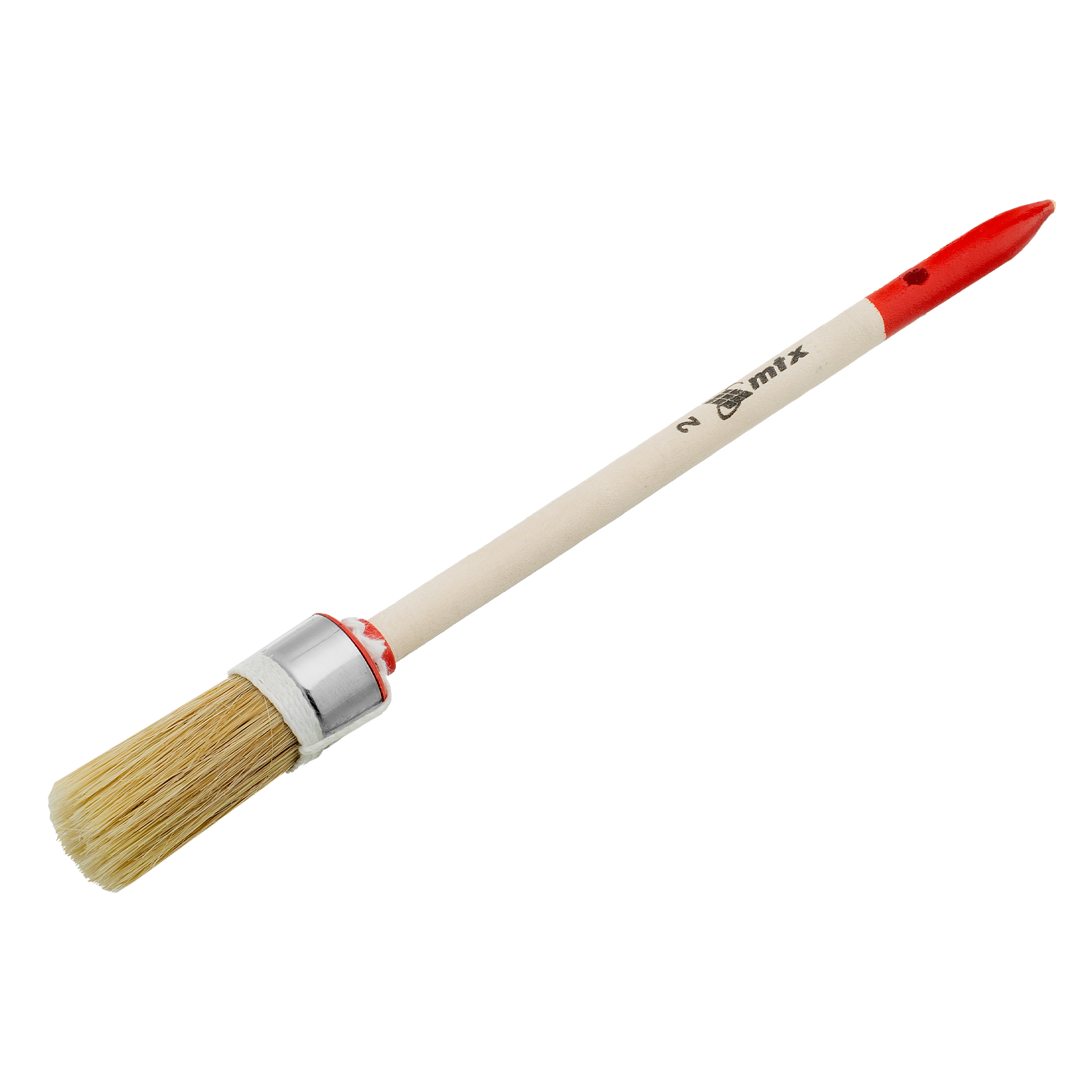Круглая кисть MTX Профи №2 82041 диаметром 20 мм, с натуральной щетиной и деревянной ручкой, используется при проведении профессиональных малярных работ. Рабочая часть из натуральной свиной щетины с небольшим добавлением искусственной устойчива к агрессивным масляным краскам и ЛКМ на основе растворителей. Круглая кисть оптимально подходит для окрашивания узких и труднодоступных участков.