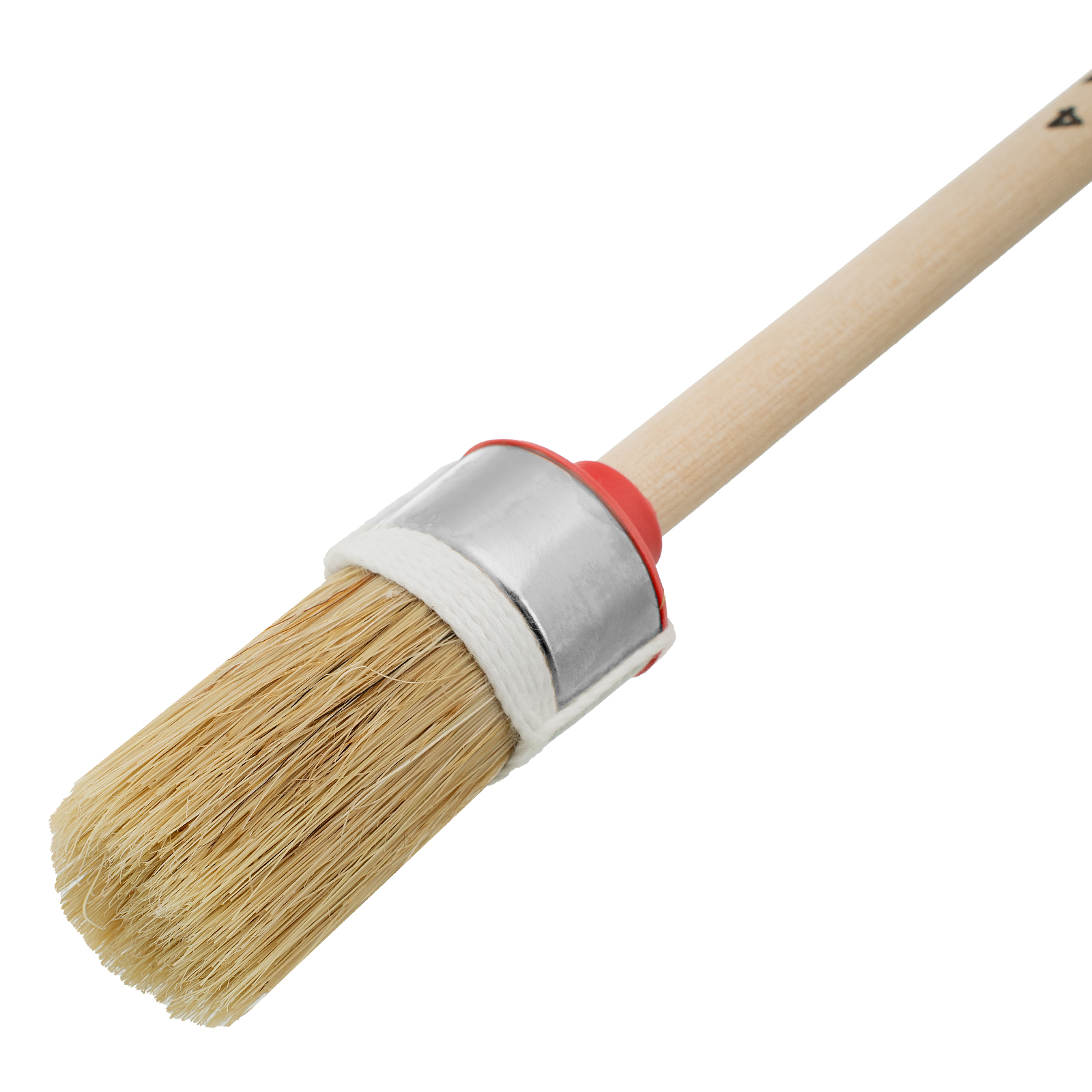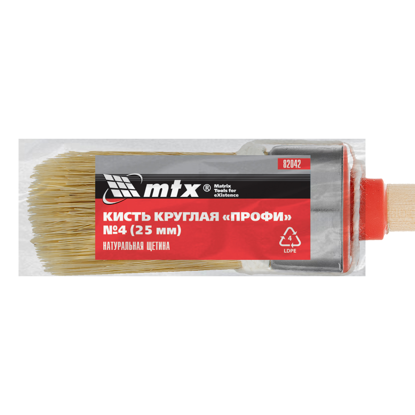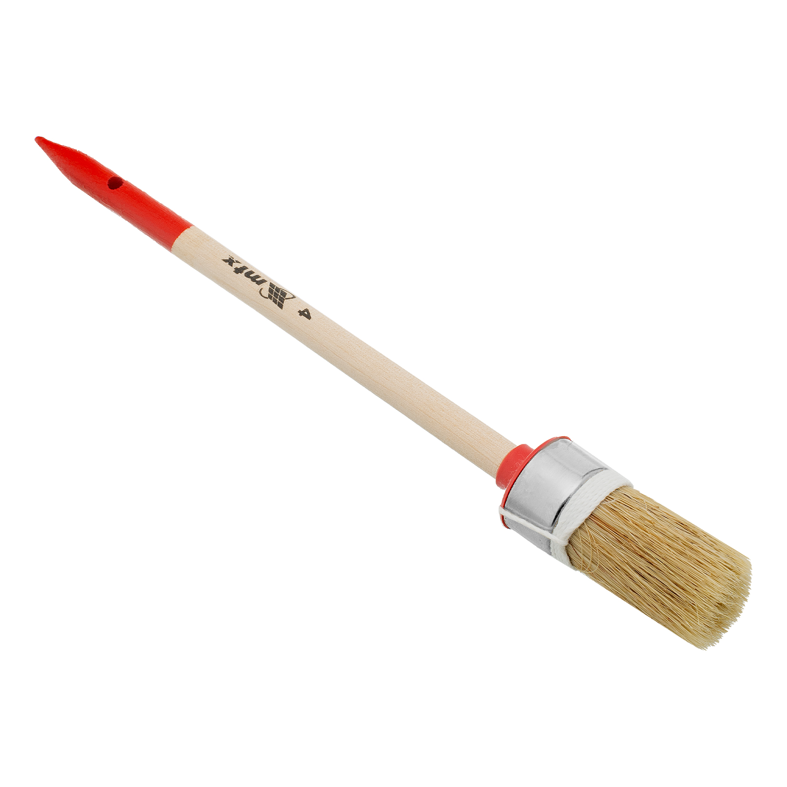 Круглая кисть MTX Профи №4 82042 диаметром 25 мм, с натуральной щетиной и деревянной ручкой, используется при проведении профессиональных малярных работ. Рабочая часть из натуральной свиной щетины с небольшим добавлением искусственной устойчива к агрессивным масляным краскам и ЛКМ на основе растворителей. Круглая кисть оптимально подходит для окрашивания узких и труднодоступных участков.