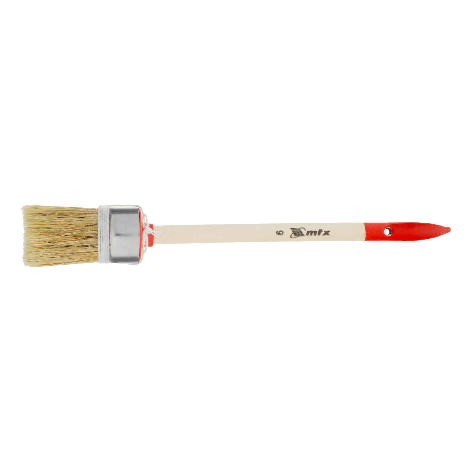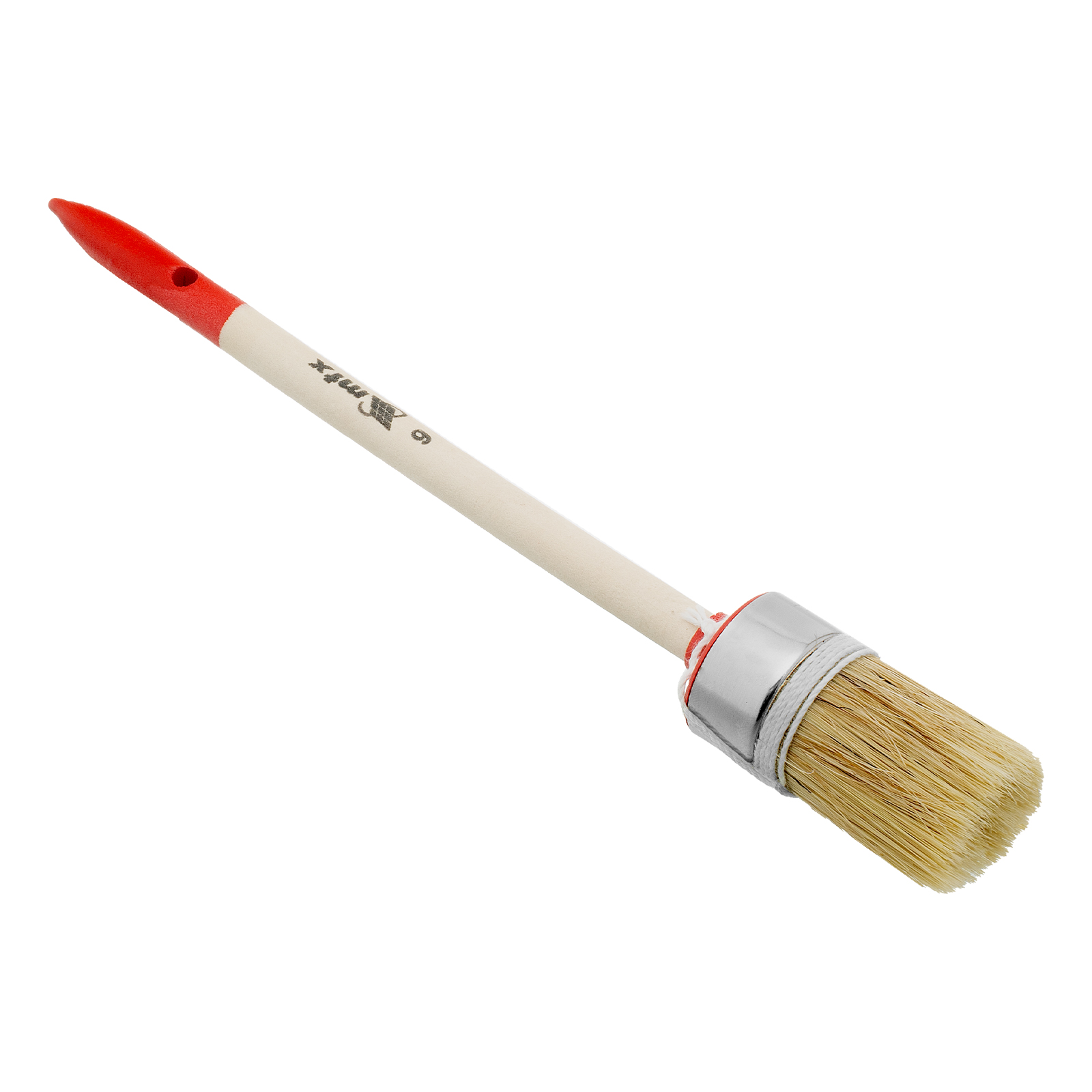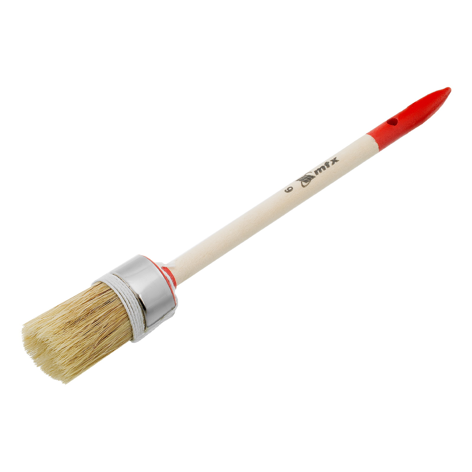 Круглая кисть MTX Профи №6 82044 диаметром 30 мм, с натуральной щетиной и деревянной ручкой, используется при проведении профессиональных малярных работ. Рабочая часть из натуральной свиной щетины с небольшим добавлением искусственной устойчива к агрессивным масляным краскам и ЛКМ на основе растворителей. Круглая кисть оптимально подходит для окрашивания узких и труднодоступных участков.