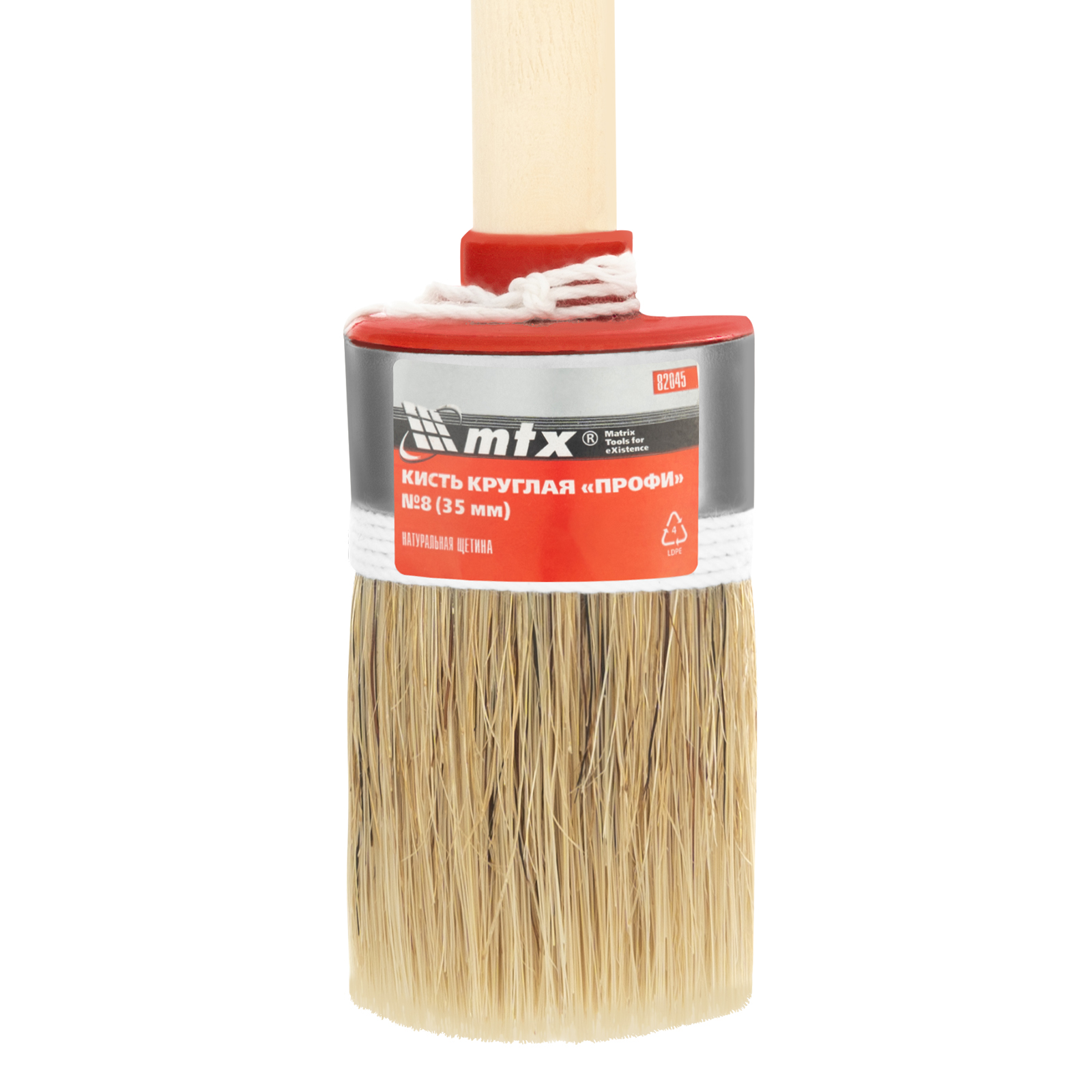Круглая кисть MTX Профи №8 82045 диаметром 35 мм, с натуральной щетиной и деревянной ручкой, используется при проведении профессиональных малярных работ. Рабочая часть из натуральной свиной щетины с небольшим добавлением искусственной устойчива к агрессивным масляным краскам и ЛКМ на основе растворителей. Круглая кисть оптимально подходит для окрашивания узких и труднодоступных участков.