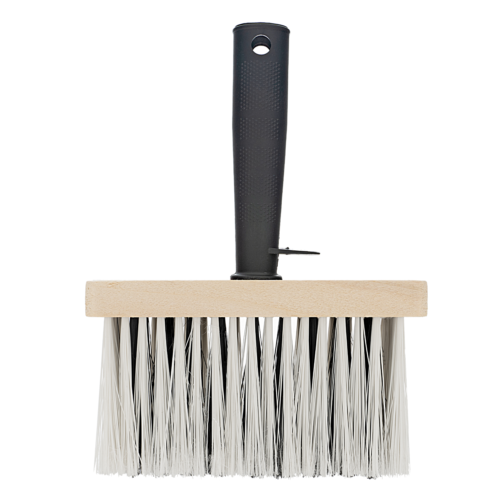 - Эргономичность — при помощи специального выступа на рукоятке кисть можно закрепить на краю ведра, ванночки или банки с краской, отверстие в ручке позволяет подвешивать инструмент на крючок или гвоздь.