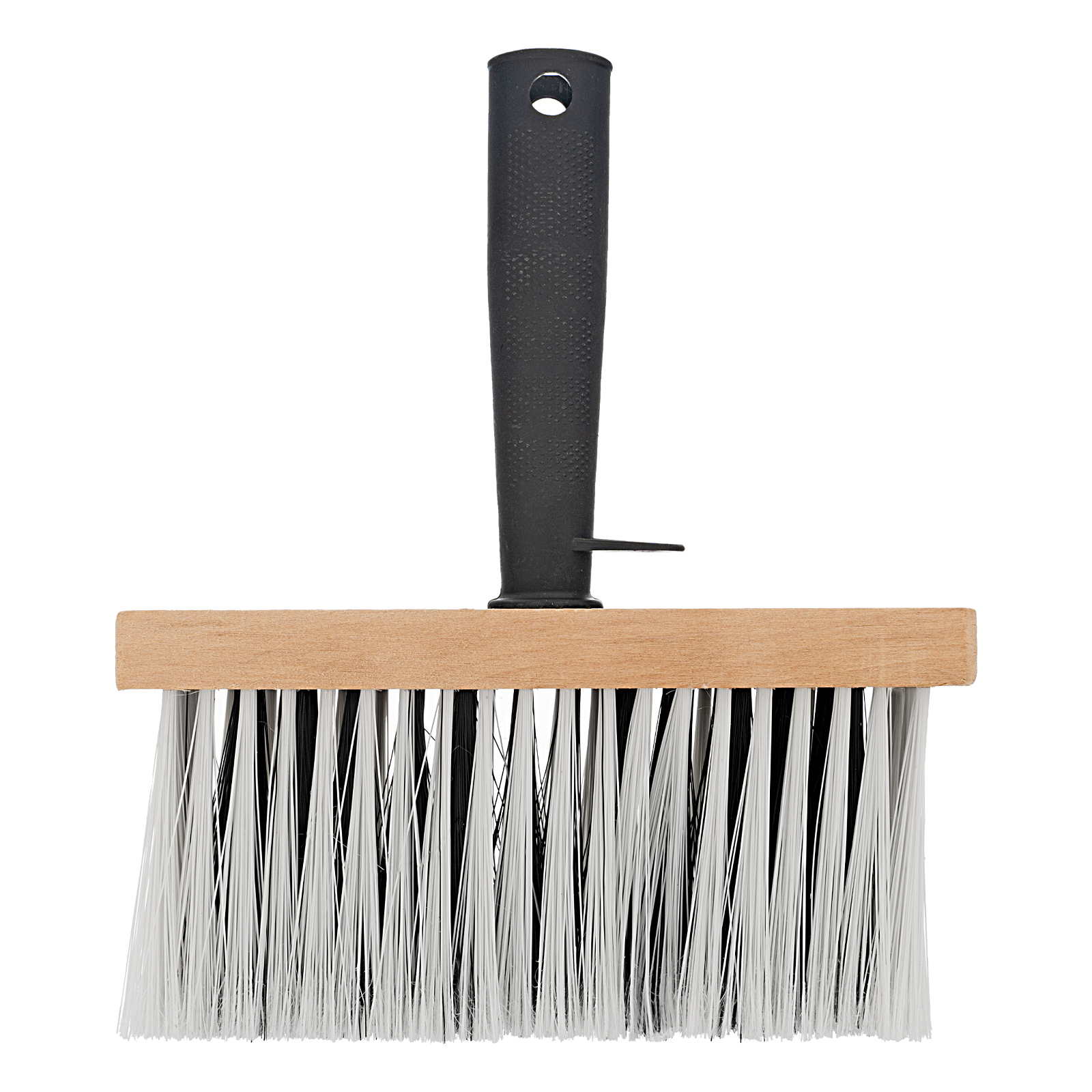 - Эргономичность — при помощи специального выступа на рукоятке кисть можно закрепить на краю ведра, ванночки или банки с краской, отверстие в ручке позволяет подвешивать инструмент на крючок или гвоздь.