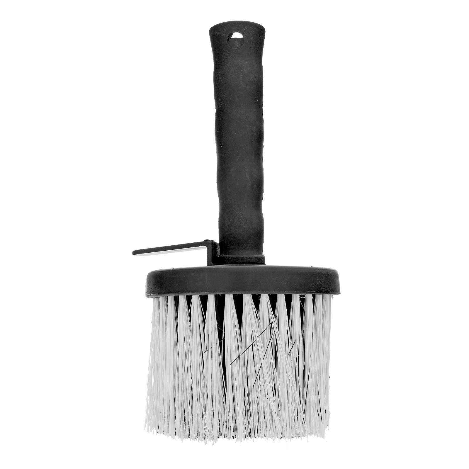 - Эргономичность — при помощи специального выступа на рукоятке кисть можно закрепить на краю ведра, ванночки или банки с краской, отверстие в ручке позволяет подвешивать инструмент на крючок или гвоздь.