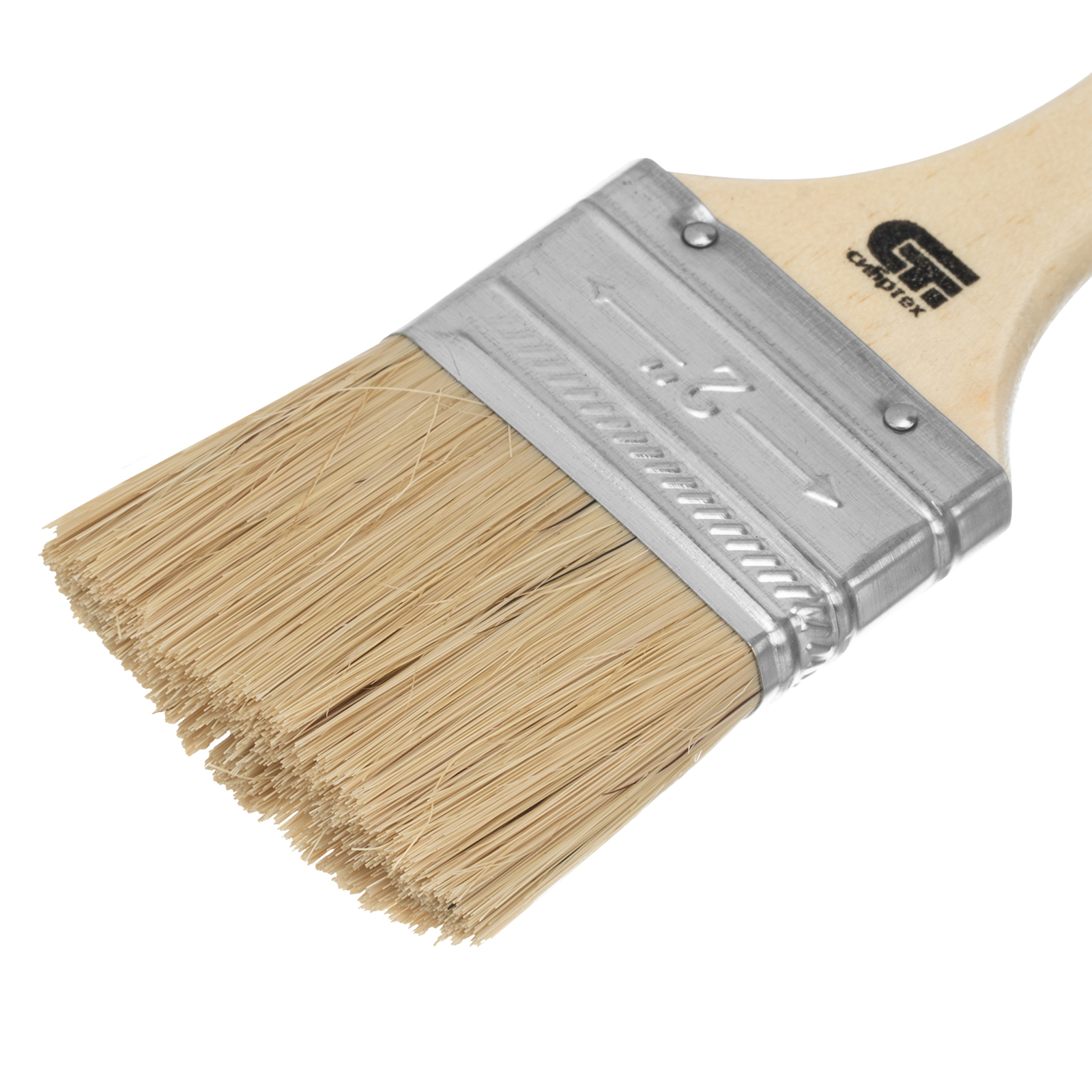 Плоская кисть Сибртех 82263 шириной 50 мм, с натуральной щетиной и деревянной ручкой, понадобится при окрашивании различных поверхностей. Ширина 50 мм делает инструмент оптимальным для окрашивания участков средней площади. Свиная натуральная щетина с добавлением искусственной подходит для большинства красок, в том числе масляных и на основе растворителей.