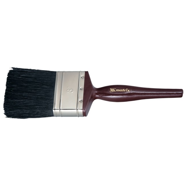 Плоская кисть MTX «Декор» 82615 шириной 3/4 дюйма (20 мм), с натуральной черной щетиной и деревянной ручкой, отличается высоким показателем жесткости, что позволяет окрашивать бетонные, кирпичные, каменные, оштукатуренные и другие грубые поверхности снаружи и внутри помещения. Износостойкая кисть оптимальна для нанесения агрессивных ЛКМ: масляных и на основе растворителей.