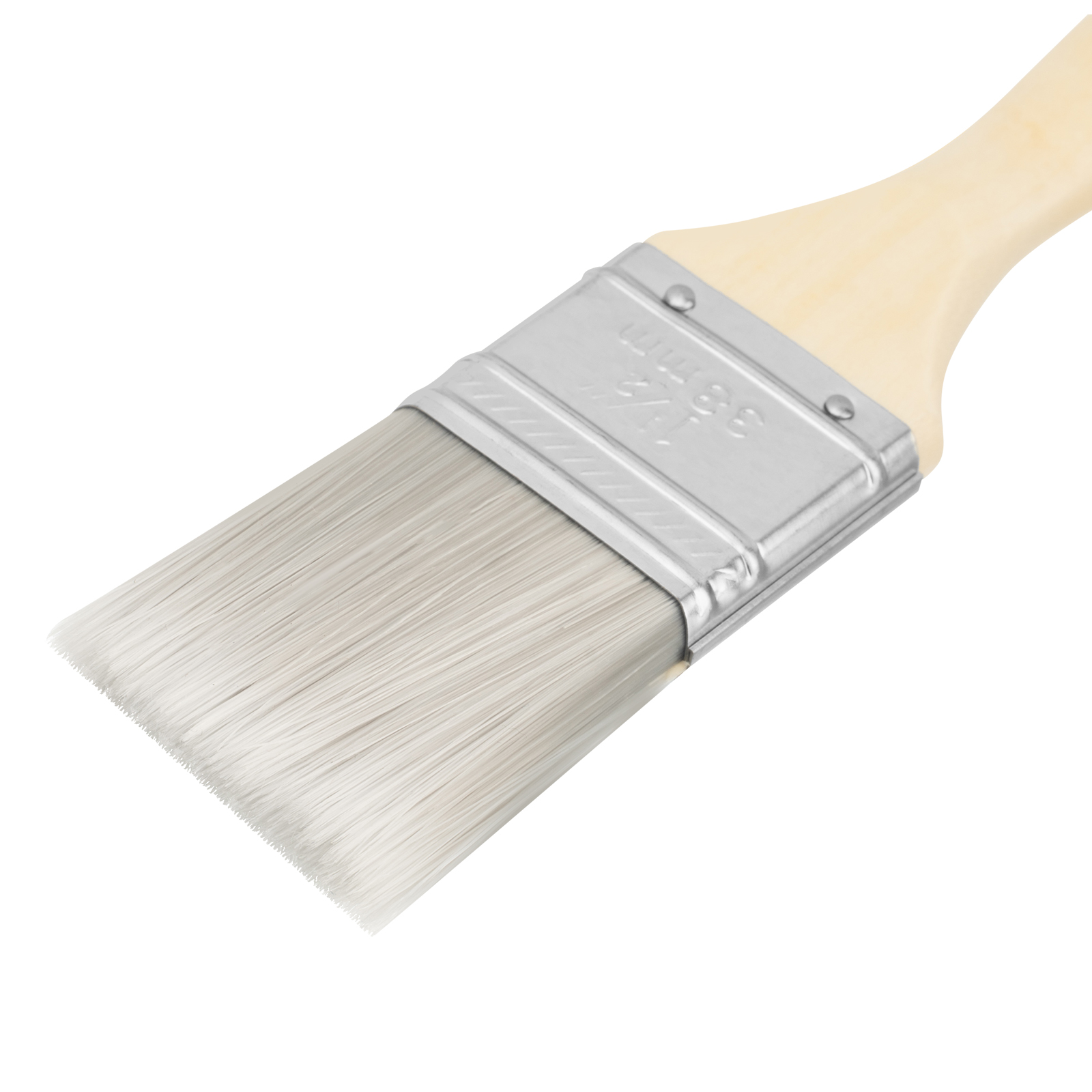 - Ширина рабочей части 38 мм — кисть подходит для окрашивания плинтусов, труб и других узких поверхностей.