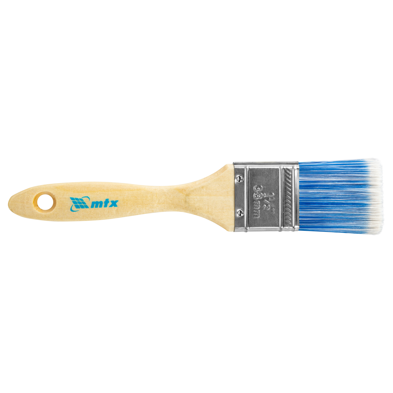 Плоская кисть MTX «Евро» 83070 шириной 1,5", с искусственной щетиной и деревянной ручкой, предназначена для малярных работ. Оптимальна для работы с водорастворимыми ЛКМ (акриловыми, латексными, водоэмульсионными), удобна для обработки узких и труднодоступных мест. Кисть подходит для профессионального использования.