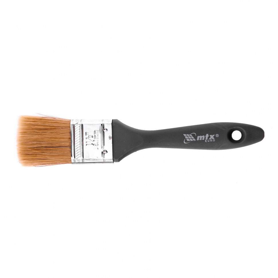 Плоская кисть MTX «Евро» 83062 шириной 1,5 дюйма, с натуральной щетиной и пластмассовой ручкой, используется для профессионального окрашивания поверхностей. Рекомендуется для нанесения агрессивных ЛКМ с содержанием растворителей.