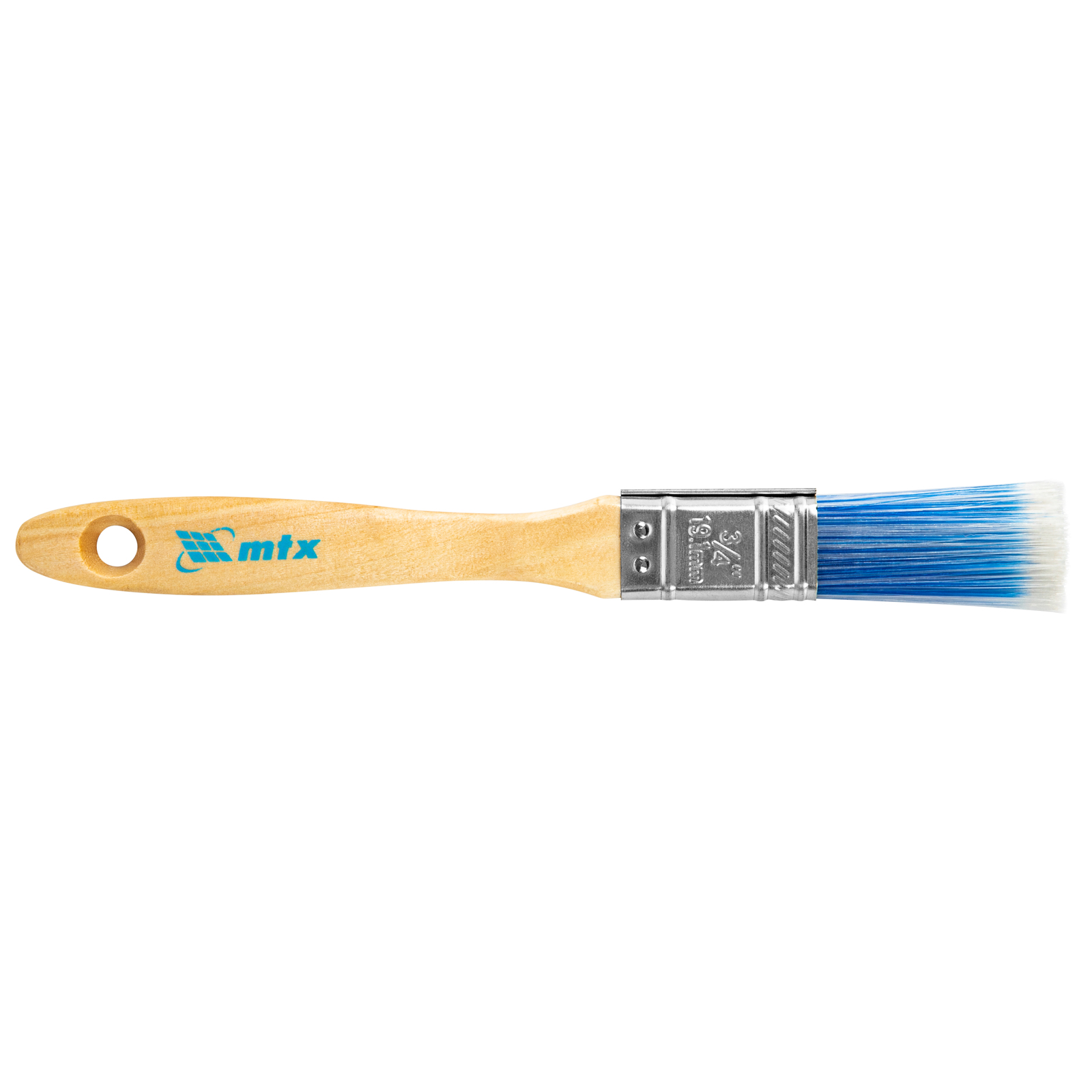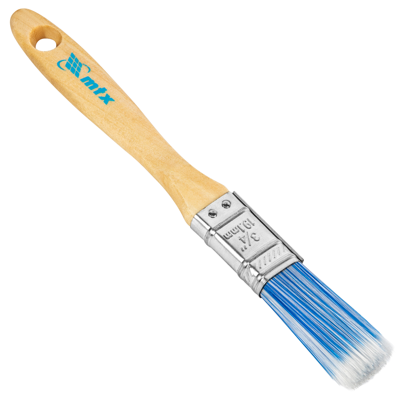Плоская кисть MTX «Евро» 83068 шириной 3/4", с искусственной щетиной и деревянной ручкой, предназначена для малярных работ. Оптимальна для работы с водорастворимыми ЛКМ (акриловыми, латексными, водоэмульсионными), удобна для обработки узких и труднодоступных мест. Кисть подходит для профессионального использования.