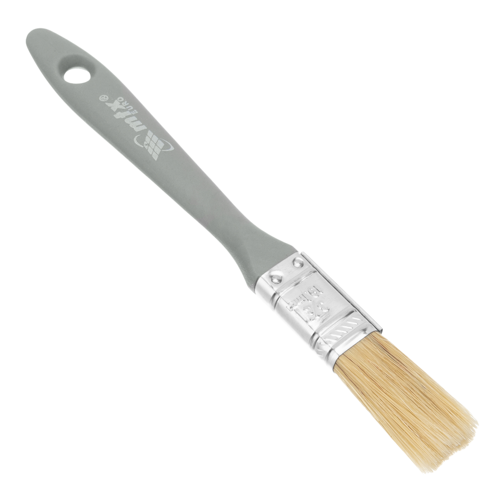 Плоская кисть MTX «Евро» 83060 шириной 3/4 дюйма, с натуральной щетиной и пластмассовой ручкой, используется для профессионального окрашивания поверхностей. Рекомендуется для нанесения агрессивных ЛКМ с содержанием растворителей.