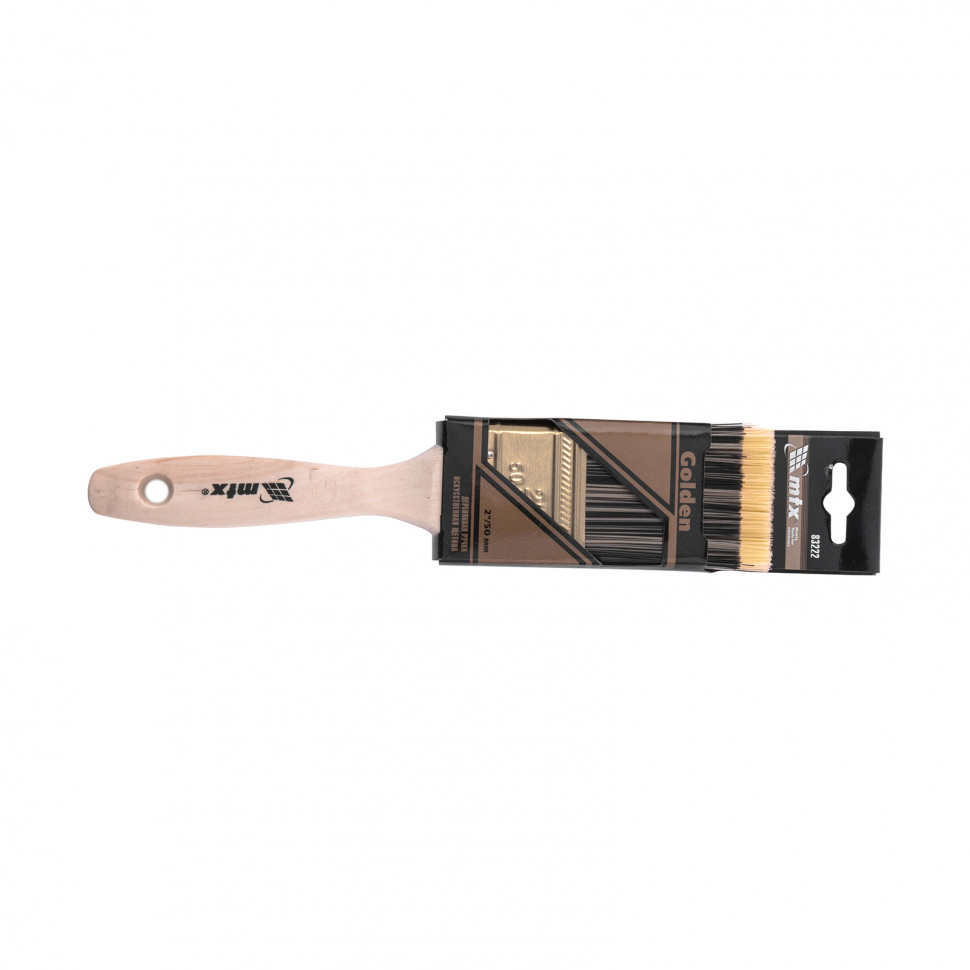 Плоская кисть MTX Golden 83222 шириной 2 дюйма, с искусственной щетиной и деревянной ручкой, используется для проведения малярных работ. Подходит для нанесения красок на водной основе, т.к. синтетическое волокно не теряет формы и упругости при работе с ними. Кисть с жесткой, полой внутри щетиной отлично впитывает и отдает краску, эффективно окрашивает грубые и неровные поверхности.
