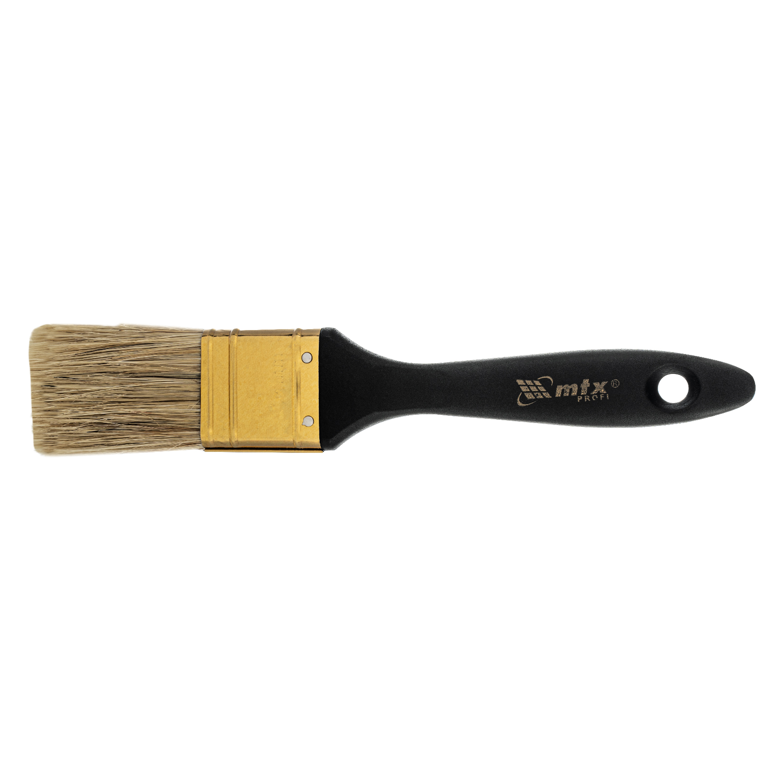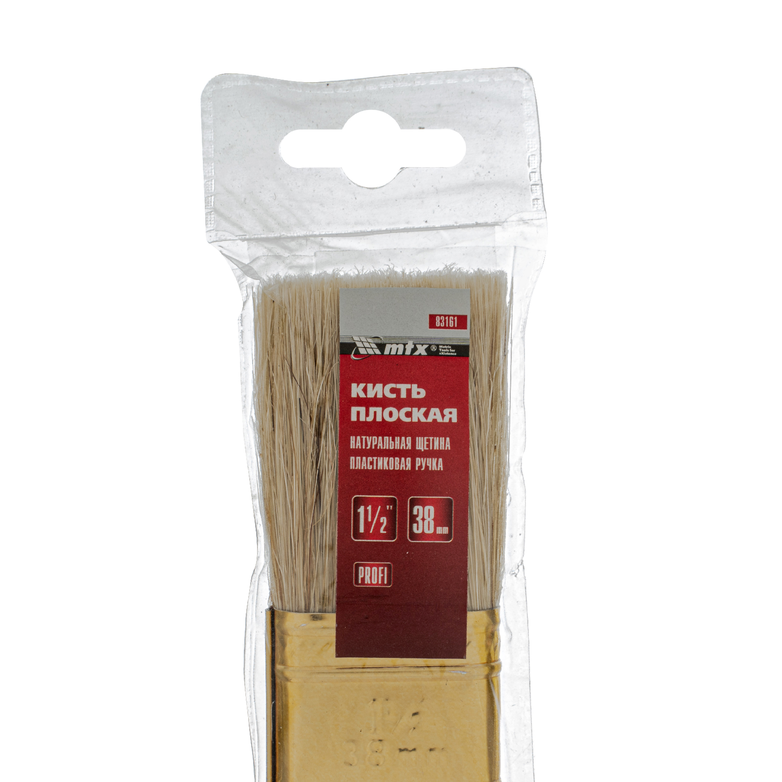Плоская кисть «Профи» MTX 83161 шириной 1,5 дюйма, с натуральной щетиной и пластмассовой ручкой, рассчитана на профессиональное выполнение малярных работ. Натуральная щетина с увеличенной плотностью набивки подходит для нанесения различных типов ЛКМ, в том числе содержащих растворители.