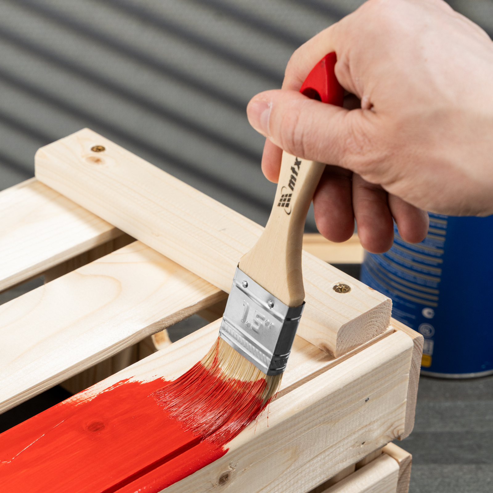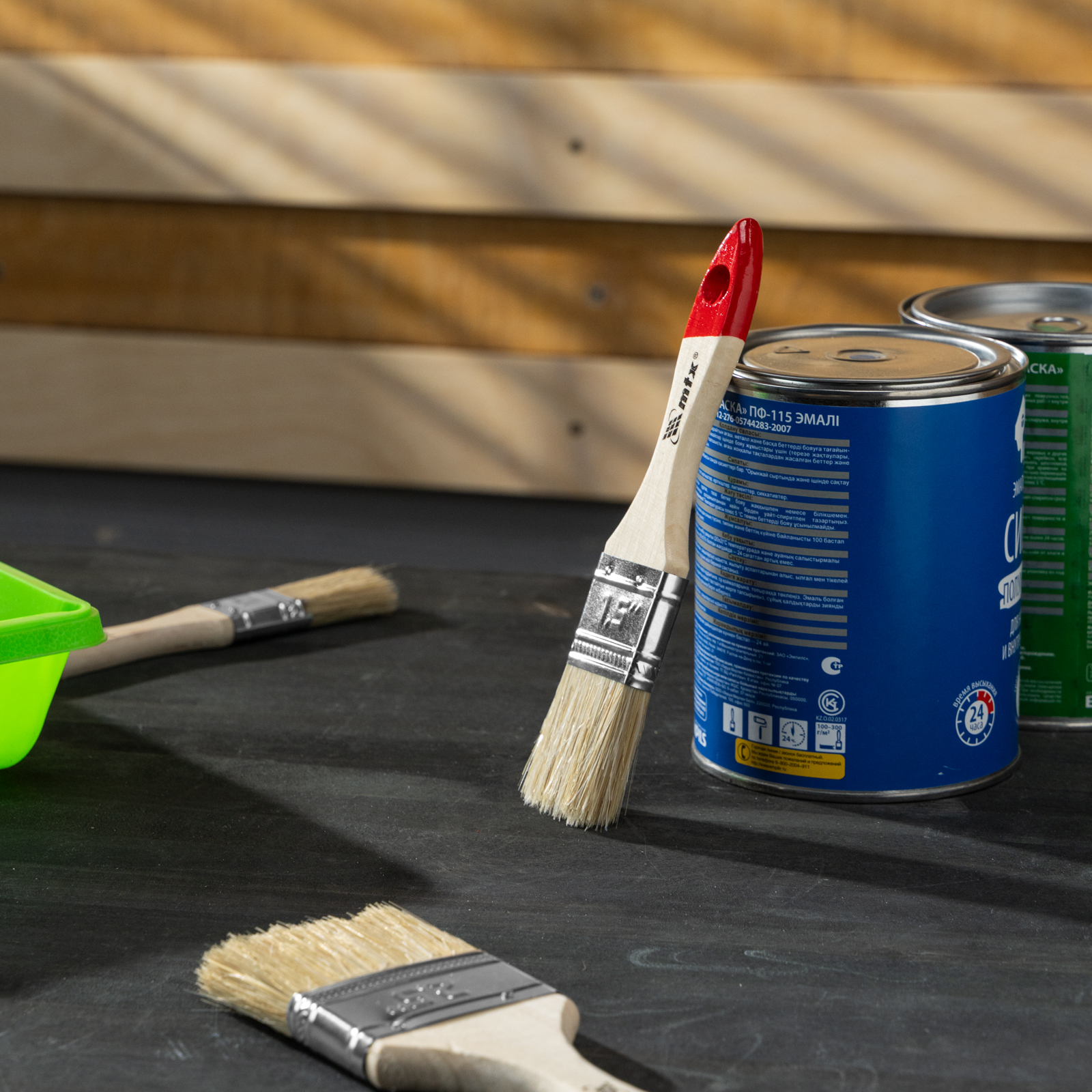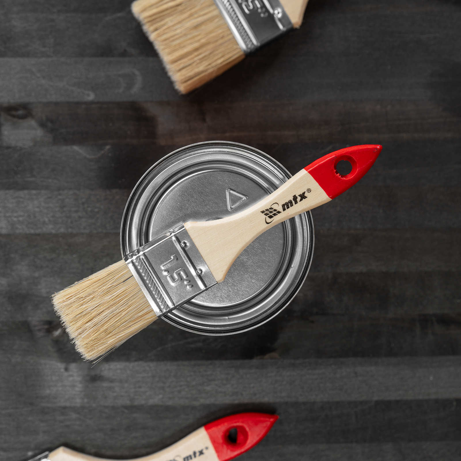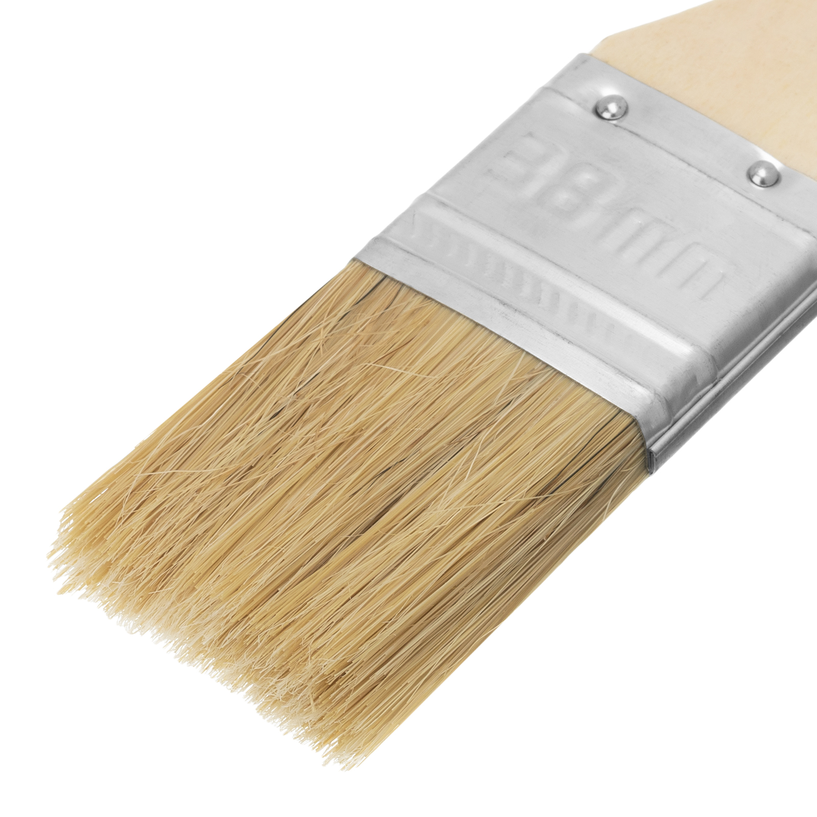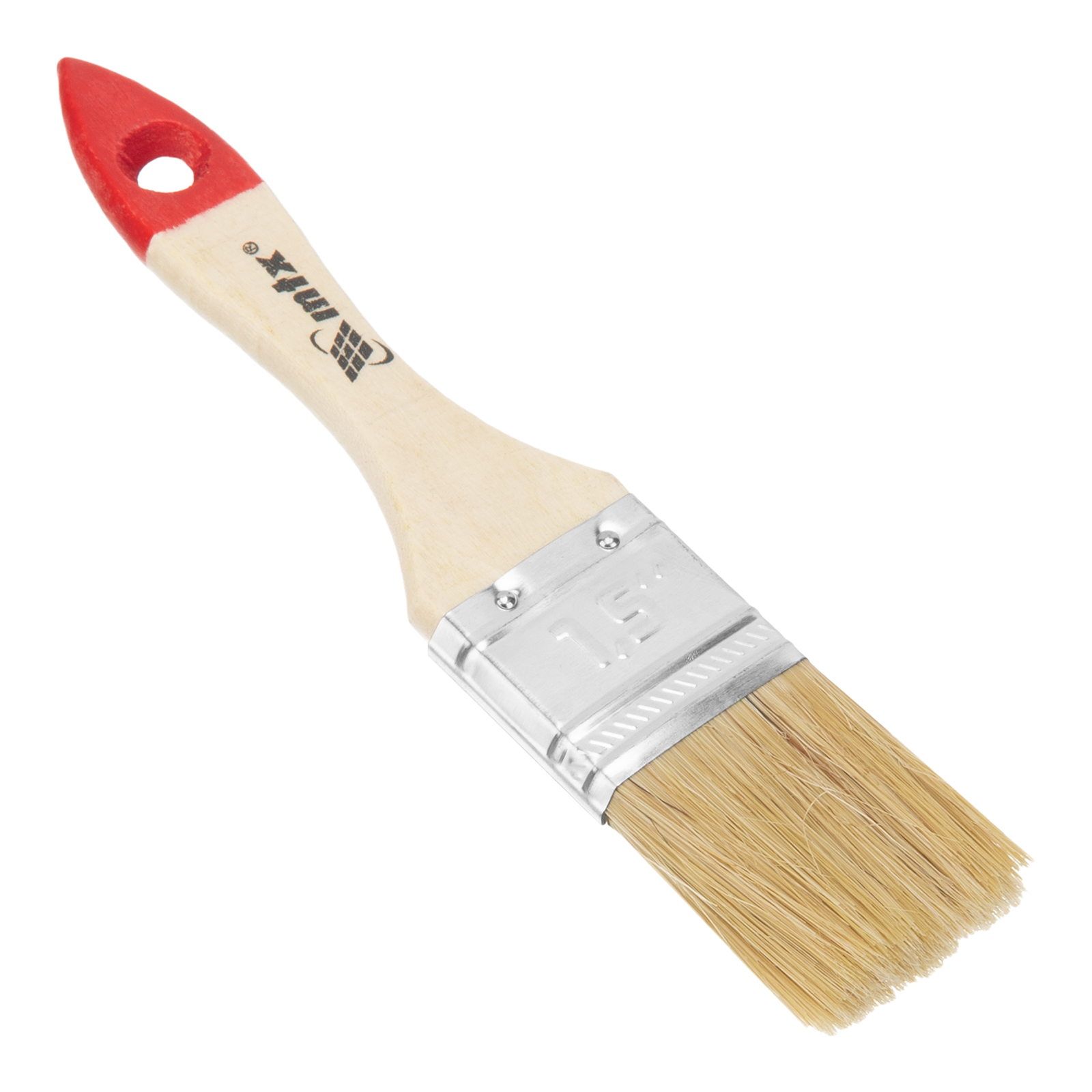 Плоская кисть MTX «Стандарт» 82525 шириной 1,5 дюйма (38 мм), с натуральной щетиной и деревянной ручкой, — инструмент для проведения бытовых малярных работ. Натуральная светлая щетина обладает высокой износоустойчивостью и подходит для нанесения красок на основе растворителей. За счет ширины 38 мм кисть подходит для окрашивания узких поверхностей, например, плинтусов и рам.