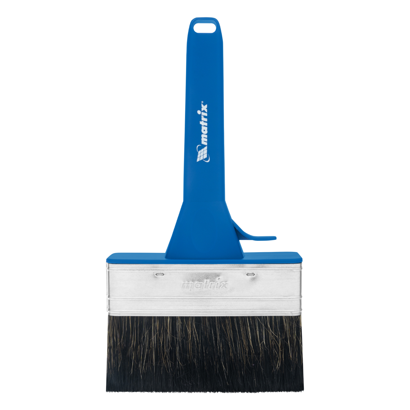 - Удобное хранение — специальная форма рукоятки позволяет закрепить инструмент на краю банки или ведра, а отверстие в верхней части служит для подвешивания кисти.