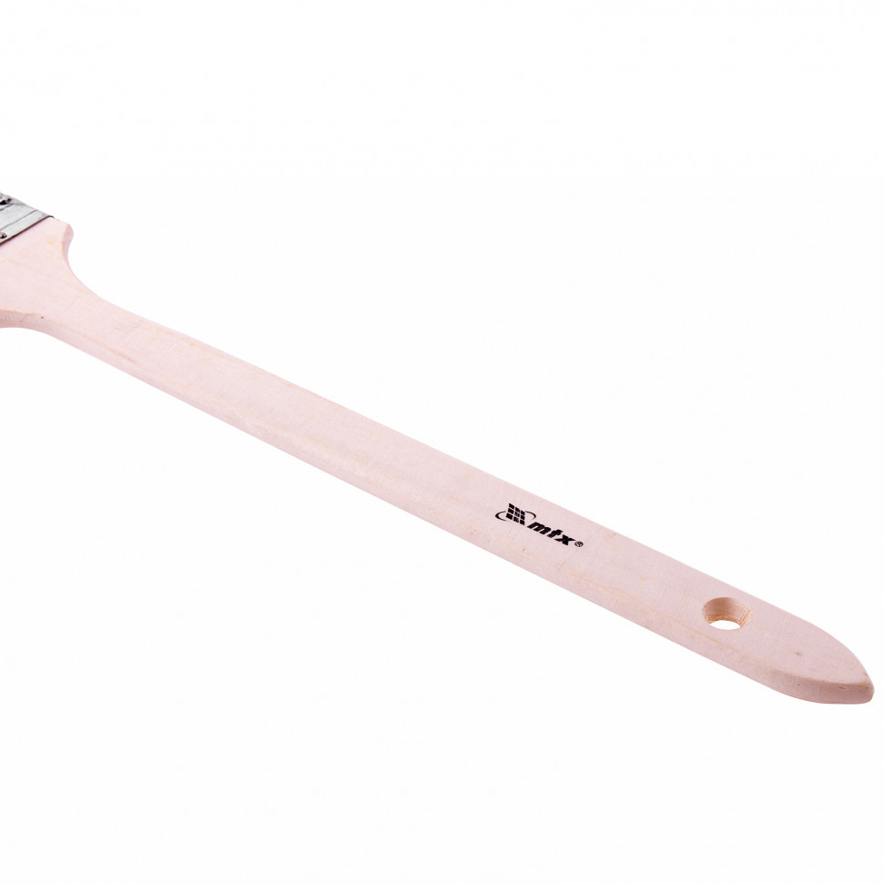 Радиаторная кисть MTX 83852 шириной 3", с натуральной щетиной и деревянной ручкой, используется для окрашивания радиаторов водяного отопления, металлических проволочных конструкций, труб, а также углов и стыков стен. Решение этих задач облегчает удлиненная ручка изогнутой формы. Натуральная щетина устойчива к агрессивным средам, поэтому кисть может применяться с эмалями и масляными красками.