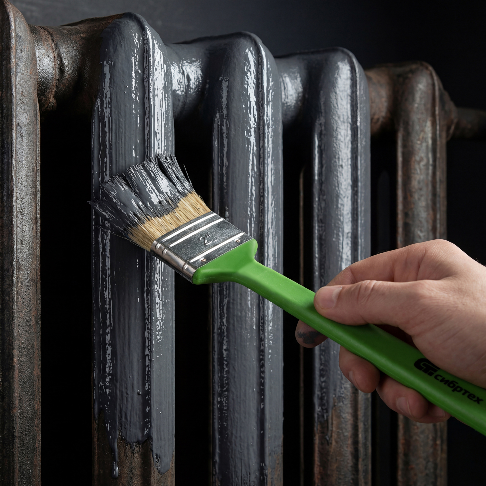 Радиаторная кисть Сибртех 83857 шириной 50 мм, с натуральной щетиной и пластиковой ручкой, позволяет окрашивать радиаторы, трубы, проволочные конструкции. Особенно удобна для покраски углов и стыков пола или потолка со стенами. Удлиненная ручка облегчает проведение малярных работ. Натуральная щетина с добавлением искусственного ворса устойчива к деформации и сохраняет упругость и краскообменные качества при использовании масляных красок и эмалей.