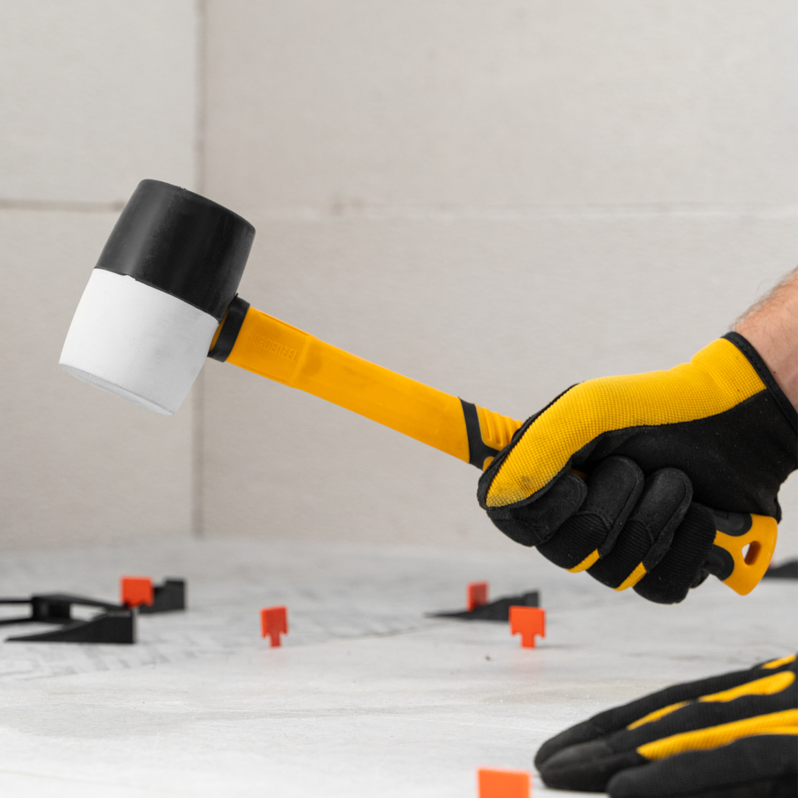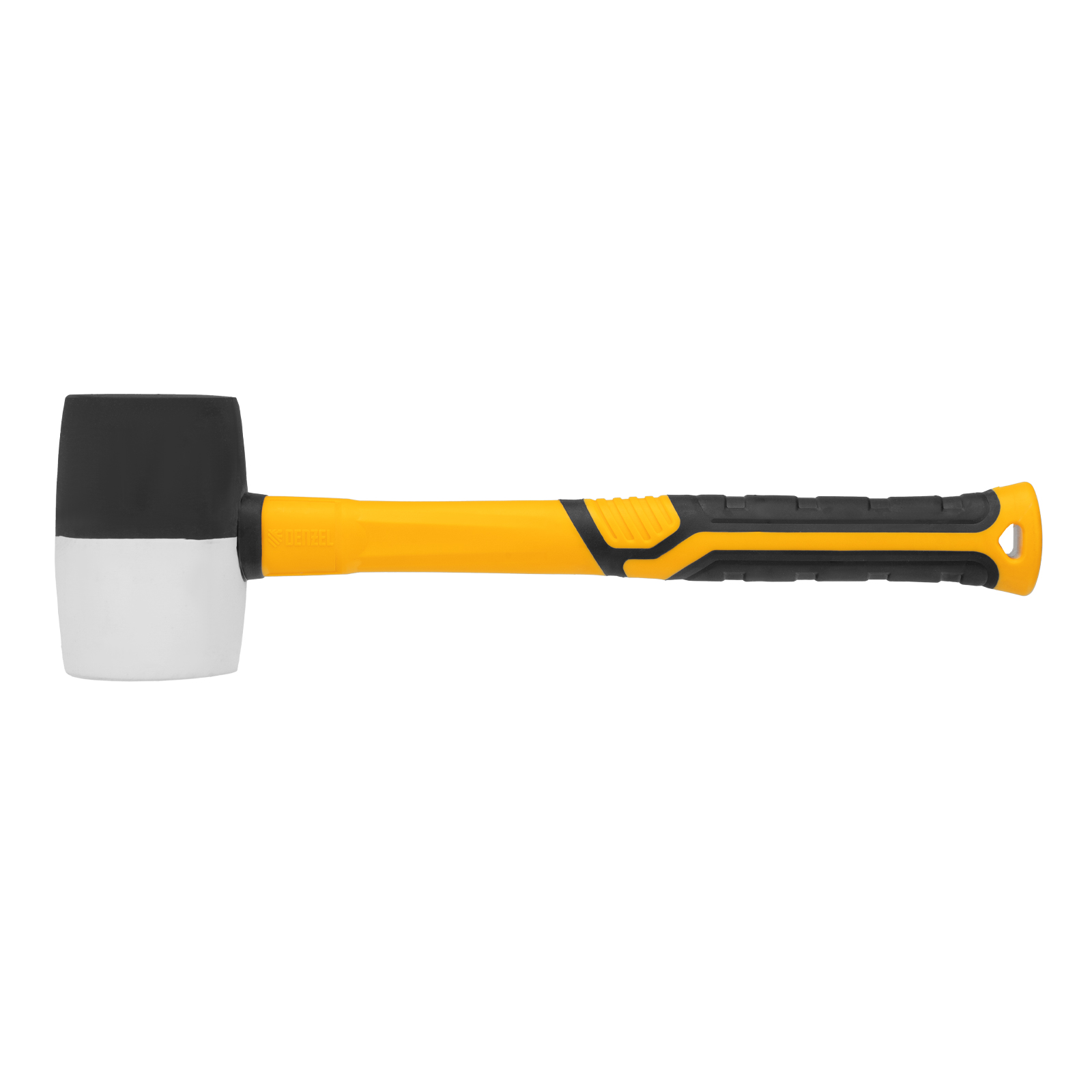 Резиновая киянка Denzel 11102 с бойком из черно-белой резины весом 450 г и фибергласовой рукояткой с TPR-покрытием, применяется во время монтажных, сборочных и кузовных работ, укладки плитки. Резиновый боек с высокими амортизирующими свойствами оптимален для работы с чувствительными к давлению материалами. Инструмент характеризуется высокой прочностью и стойкостью к агрессивному воздействию, подходит для профессионального использования.